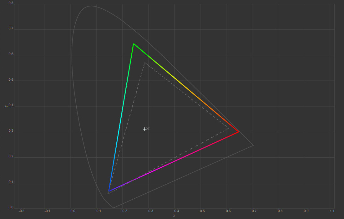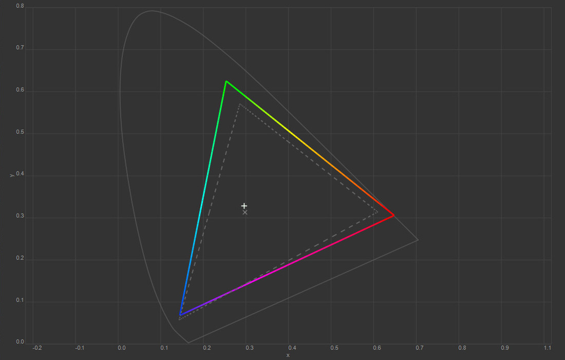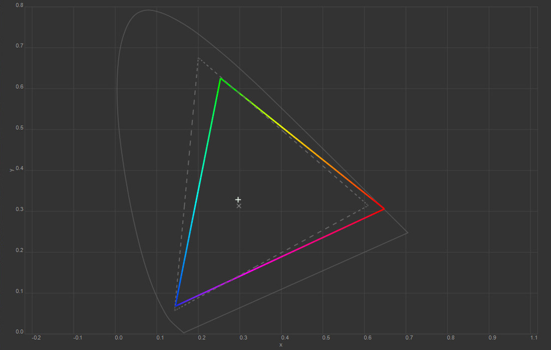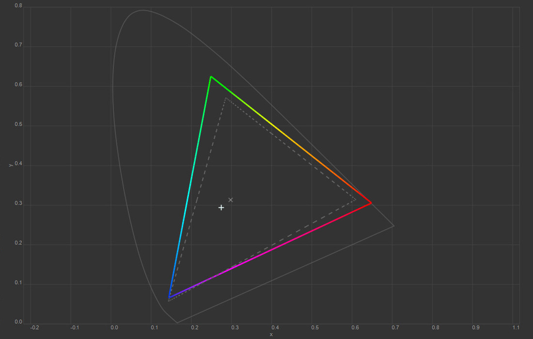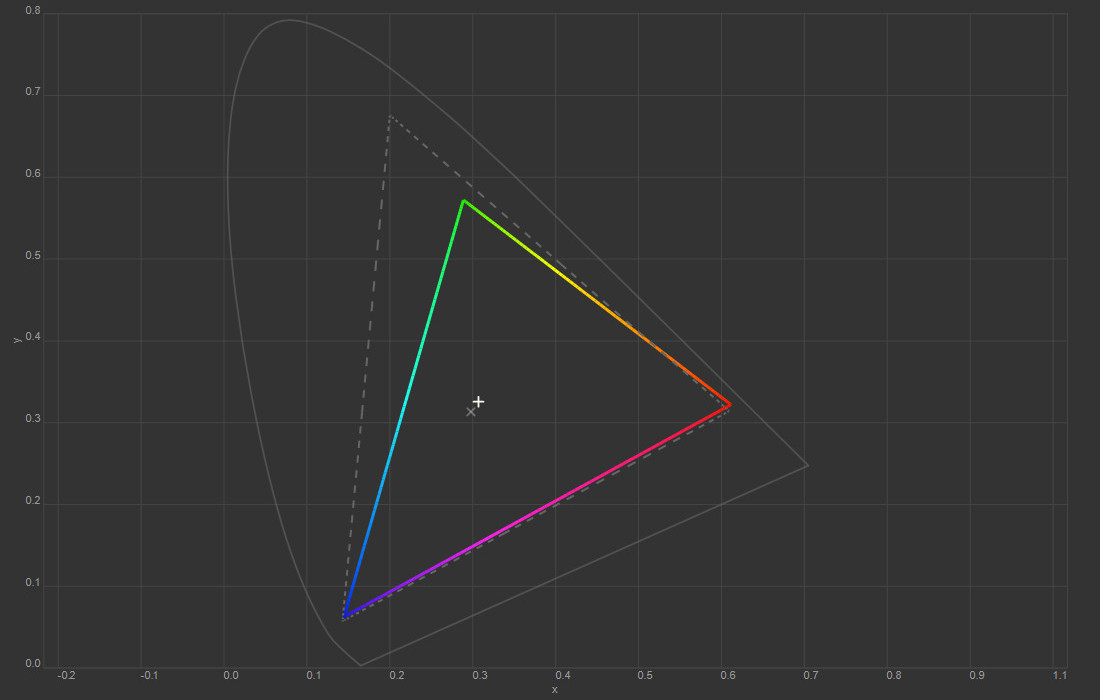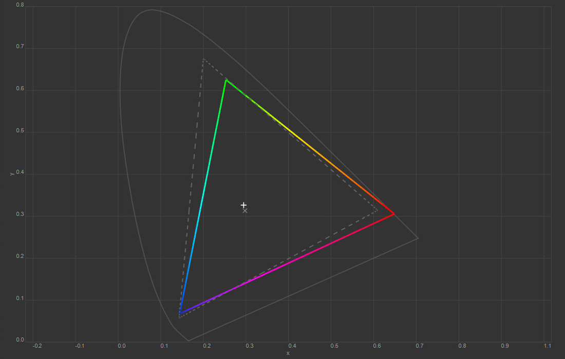 В то же время, синюю составляющую гамма-кривой удалось приблизить к референсному значению 2,2, а уровни RGB стали немного более равномерными, без глубоких провалов. Это локальные улучшения, которые не изменяют общую картину: VA-матрица имеет аппаратные ограничения, и sRGB-прессет не позволяет достичь референсной точности без аппаратного LUT-корректора.