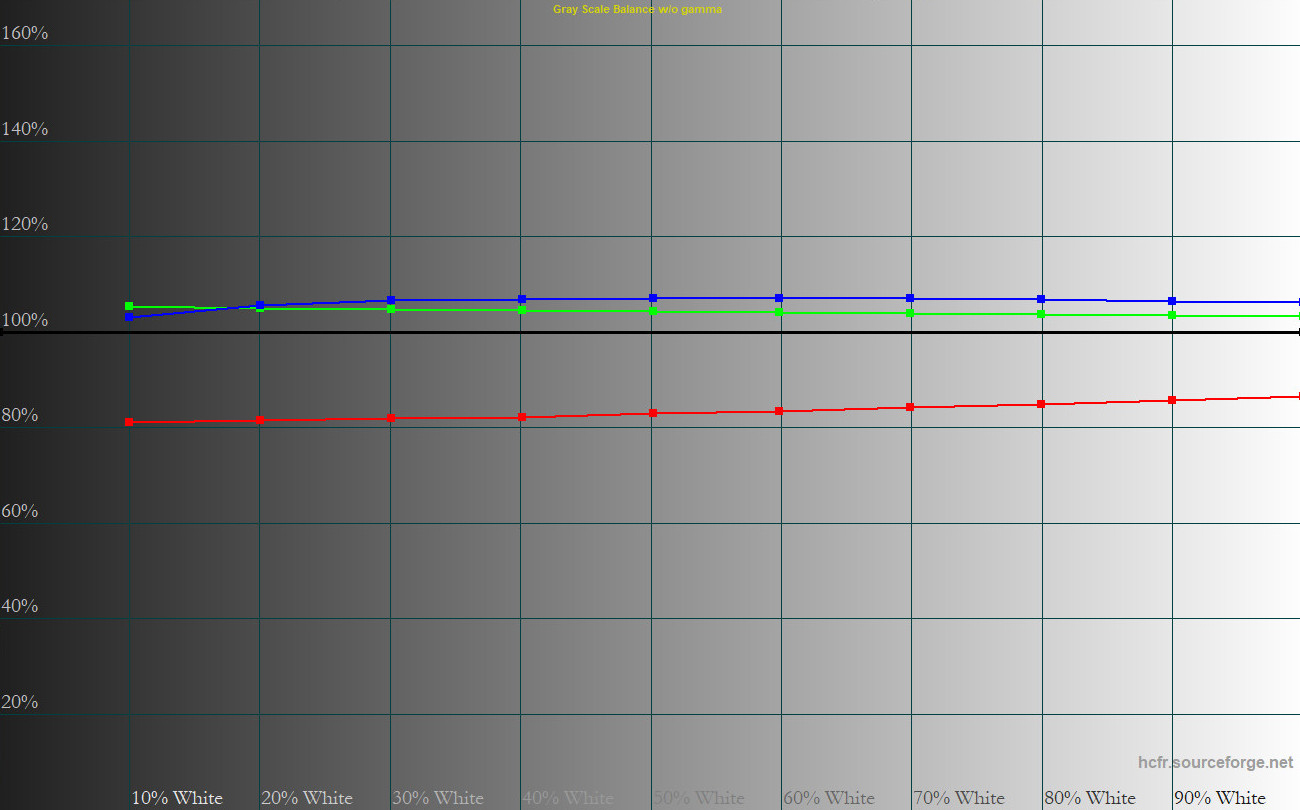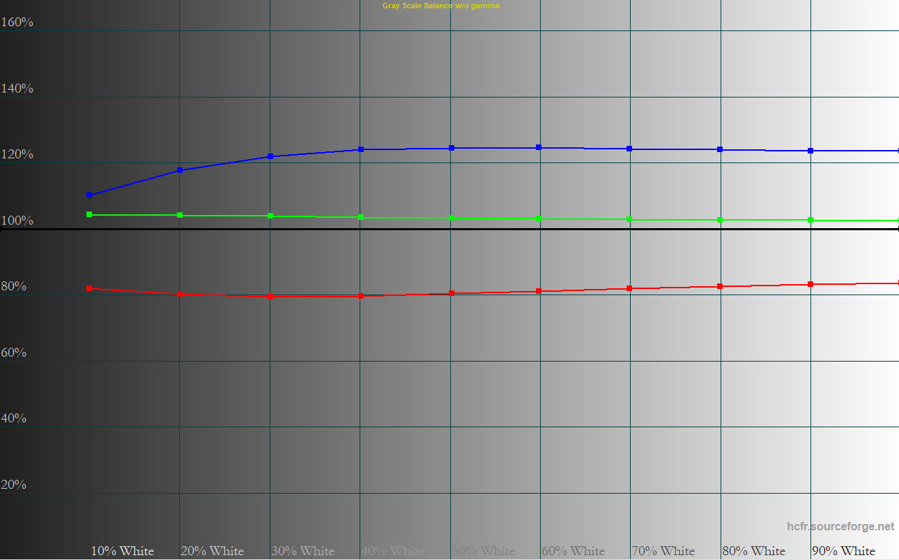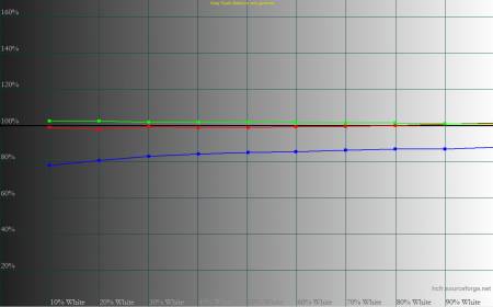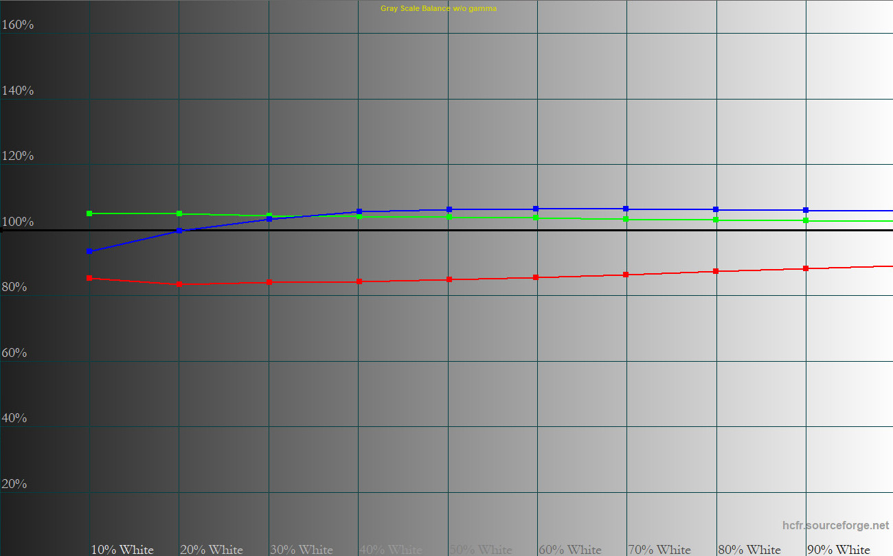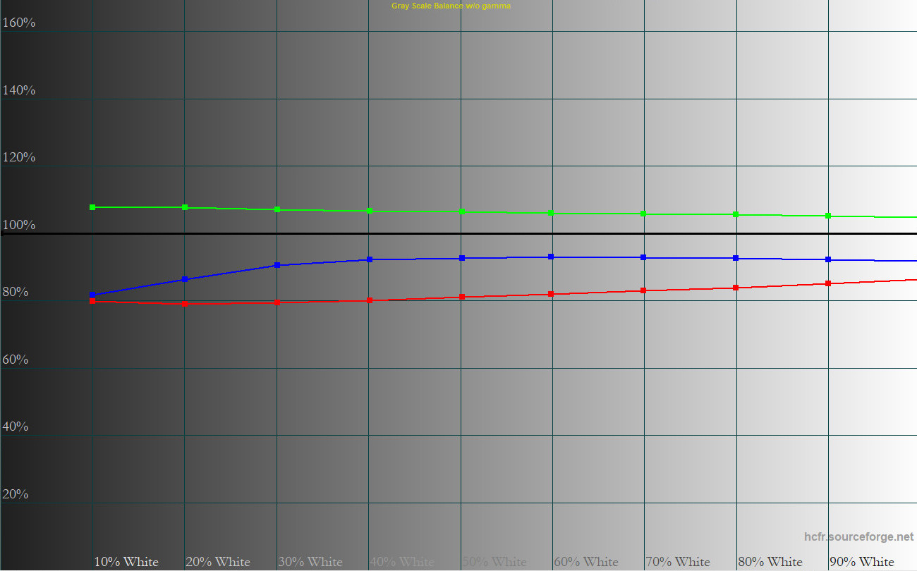 Как видим, заводские пресеты не обеспечивают полного равновесия RGB. Это типично для VA-матриц: они редко удерживают уровни каналов стабильно, особенно на темных оттенках. Из-за особенностей структуры VA часто «проседает» по красному или синему, а заводские режимы больше ориентированы на яркую картинку, чем на точность.