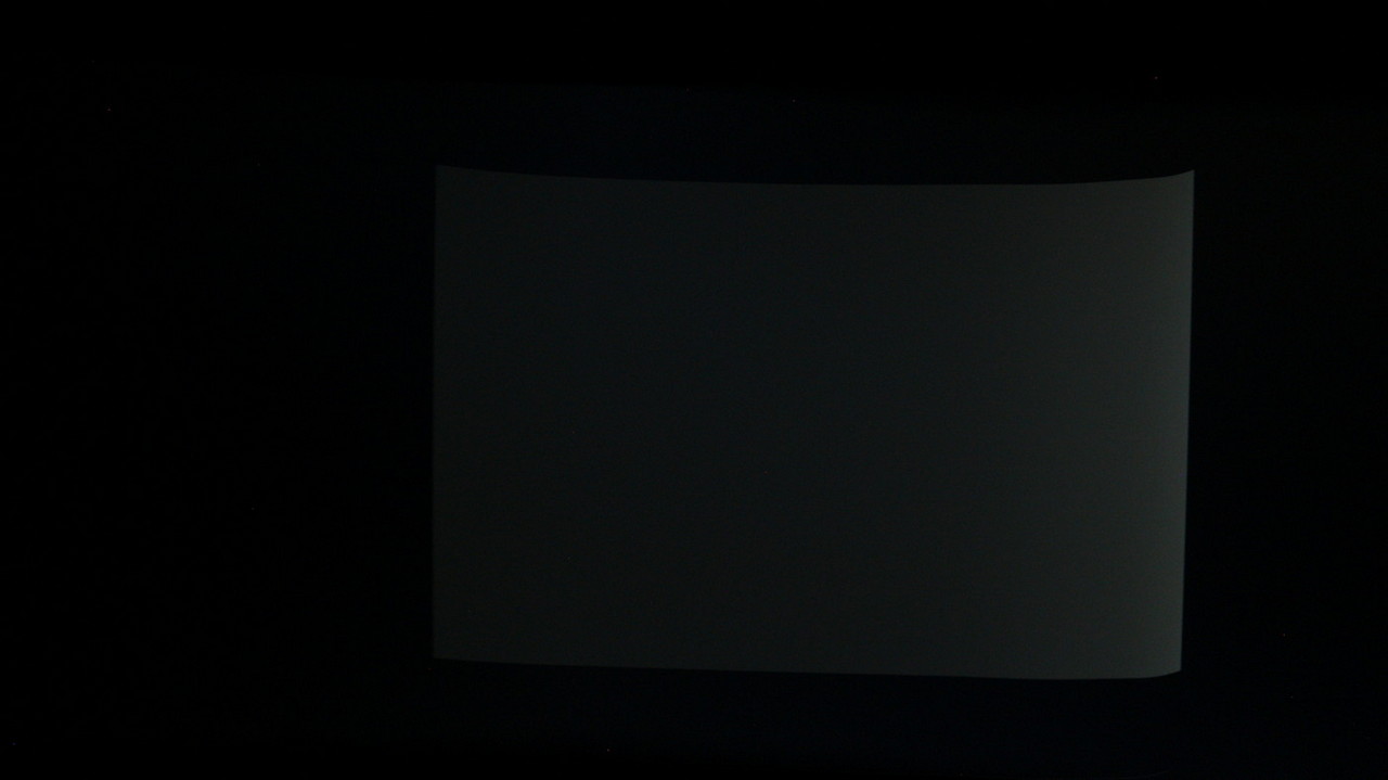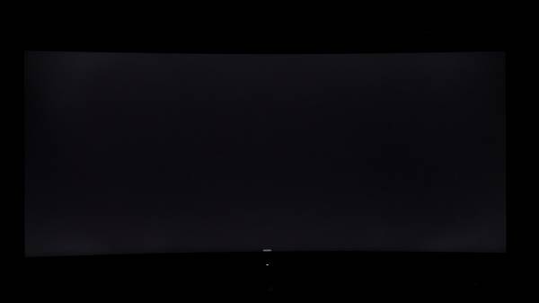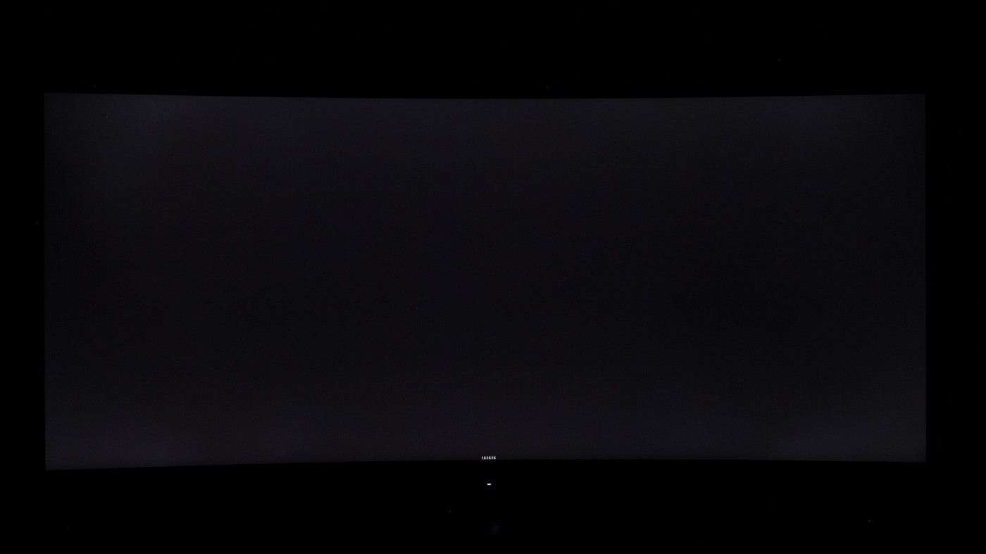 Едва заметные засветы на черном экране проявляются только в полной темноте. Они наблюдаются по углам и вдоль верхней и нижней границы панели – типичная ситуация для изогнутых VA-мониторов с диагональю 34". Важно, что интенсивность засветов небольшая, без локальных пятен или ореолов, как это часто бывает на IPS-моделях с аналогичной геометрией.