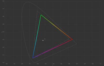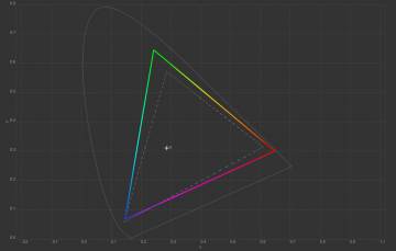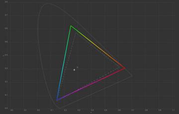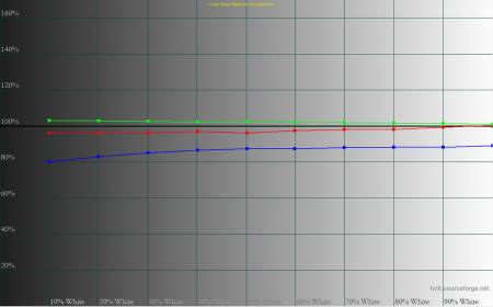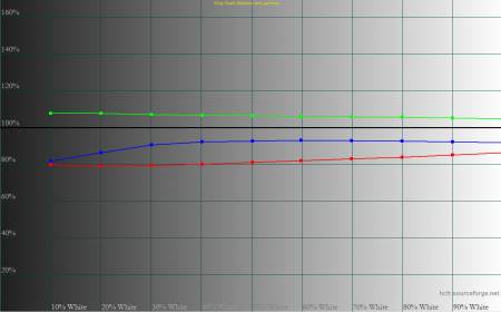 Калибровка режима «sRGB» позволила снизить яркость белого поля до комфортных 99,4 кд/м², приблизить точку белого к эталонным 6590K (вместо 5992K) и снизить энергопотребление — с 32 до 28 Вт, при сохранении приемлемой контрастности 2364:1.