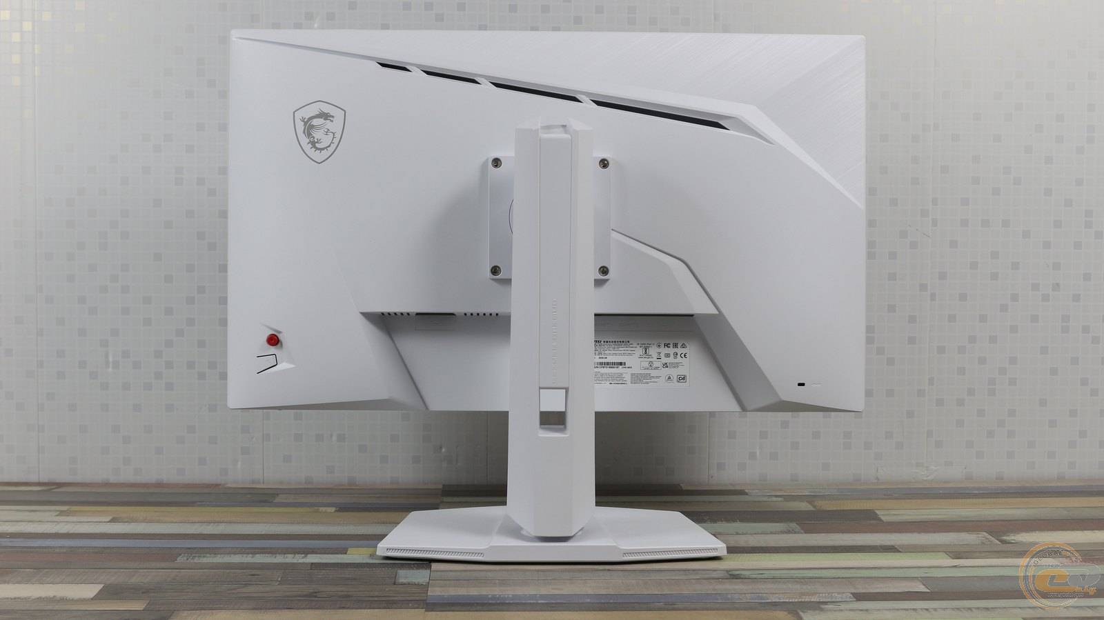 Дизайн – отдельная история: белый корпус с агрессивными акцентами и белой подсветкой сзади выглядит эффектно и станет украшением стильных сетапов. Качественная подставка позволяет регулировать высоту, наклон, поворот и даже переводить экран в портретный режим, что значительно повышает удобство использования. Единственный компромисс — отсутствие механизма быстрой фиксации ножки, поэтому для сборки понадобится отвертка, но это мелочь на фоне общей эргономики.