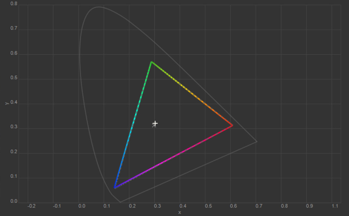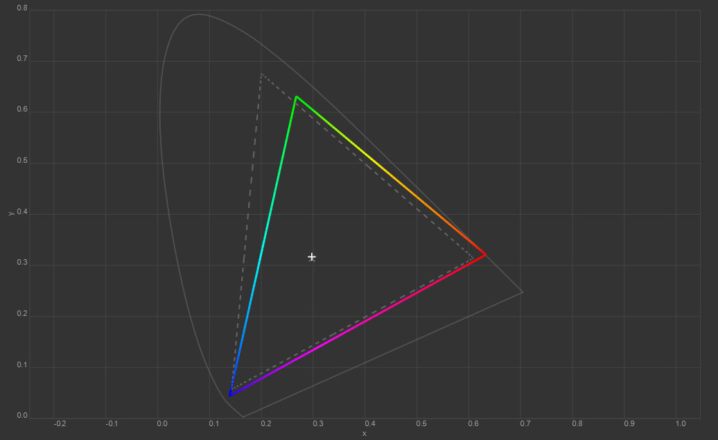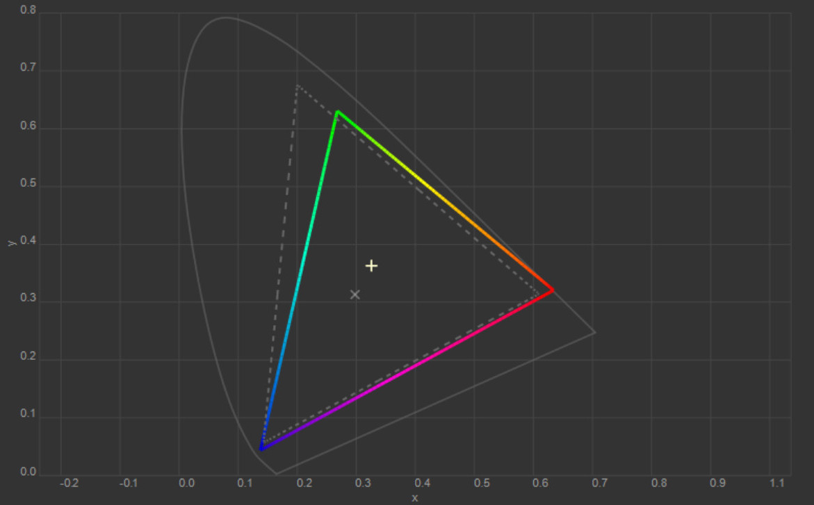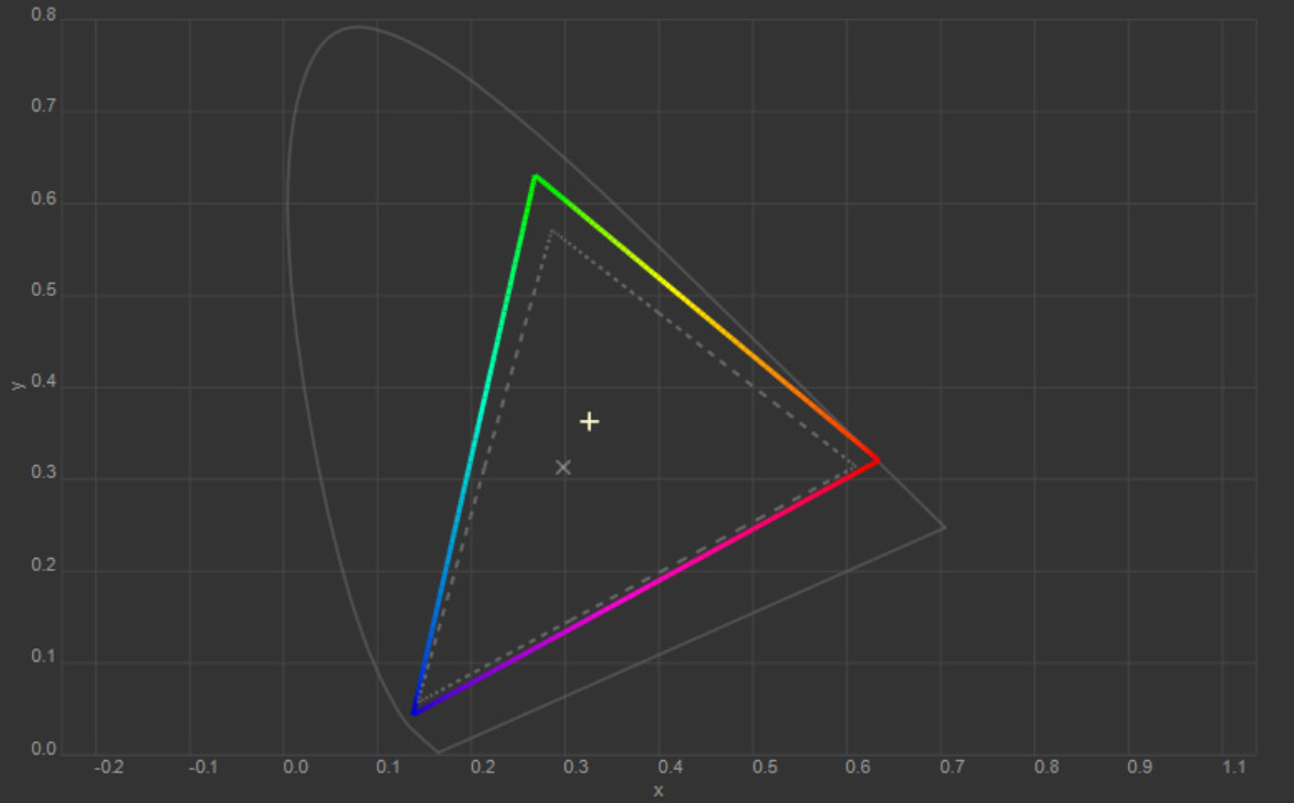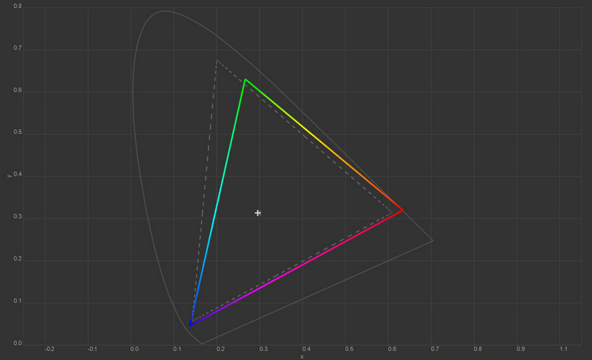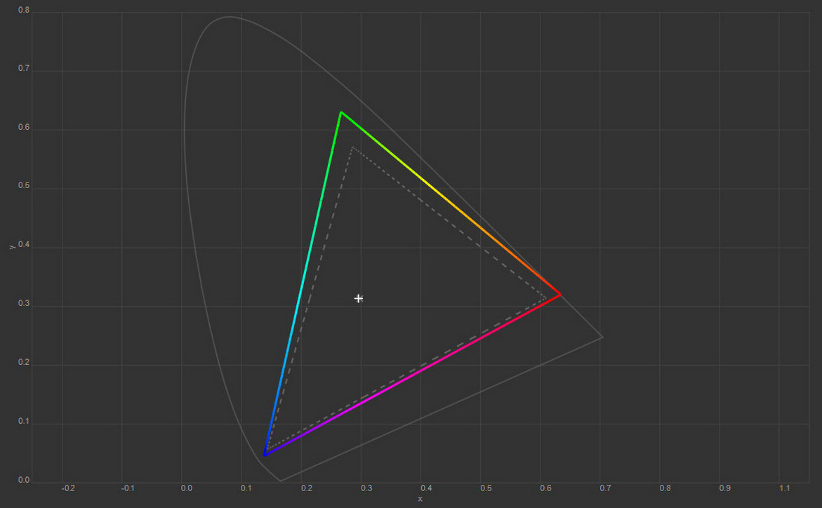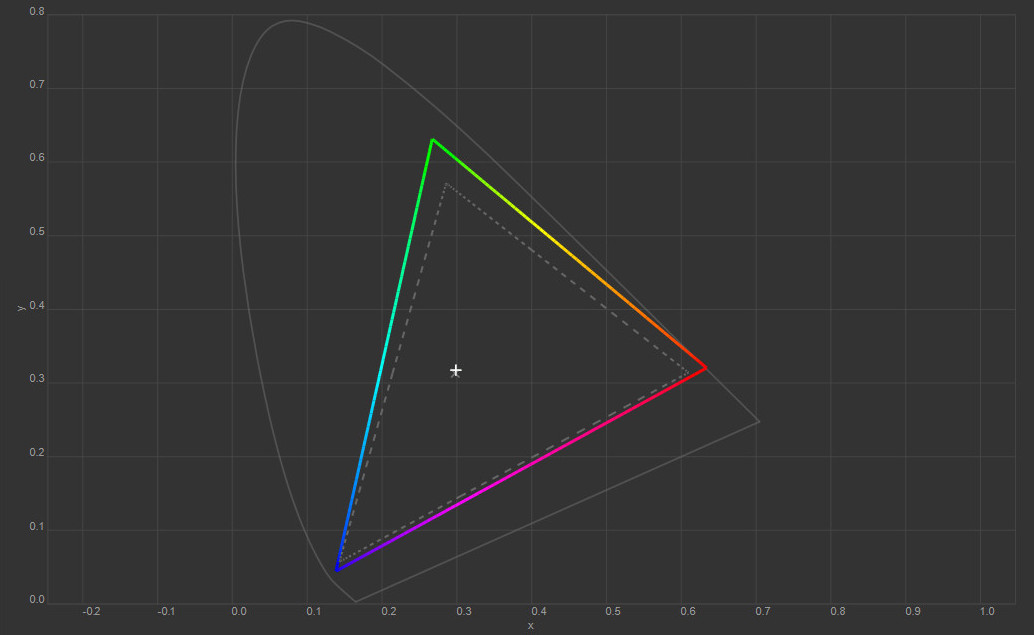 Цветовая температура точки белого сместилась до 6627 К, то есть картинка стала немного холоднее. Охват sRGB остался на уровне 100%, Adobe RGB незначительно вырос, а объем цветового диапазона увеличился на несколько десятых процентов.