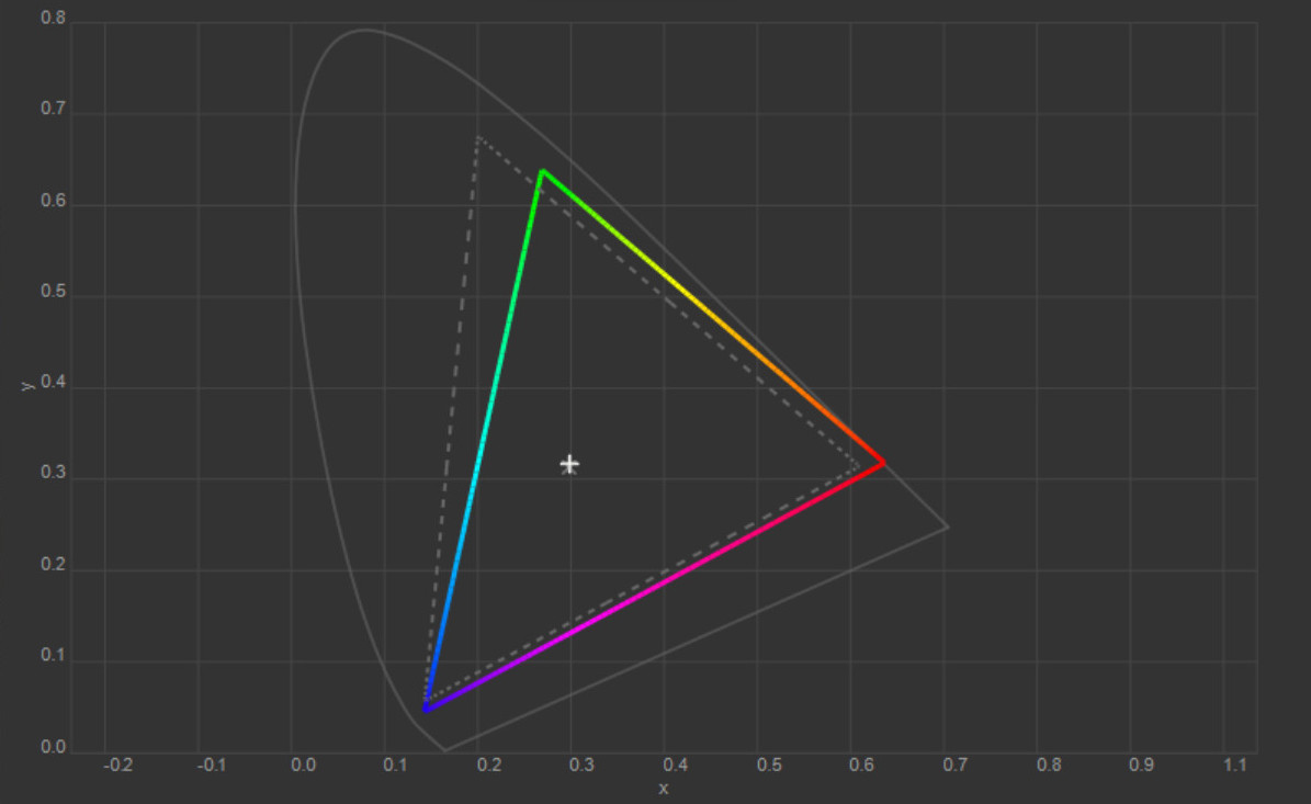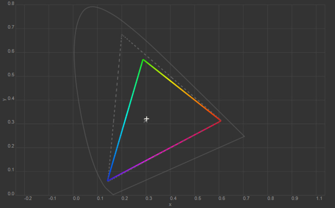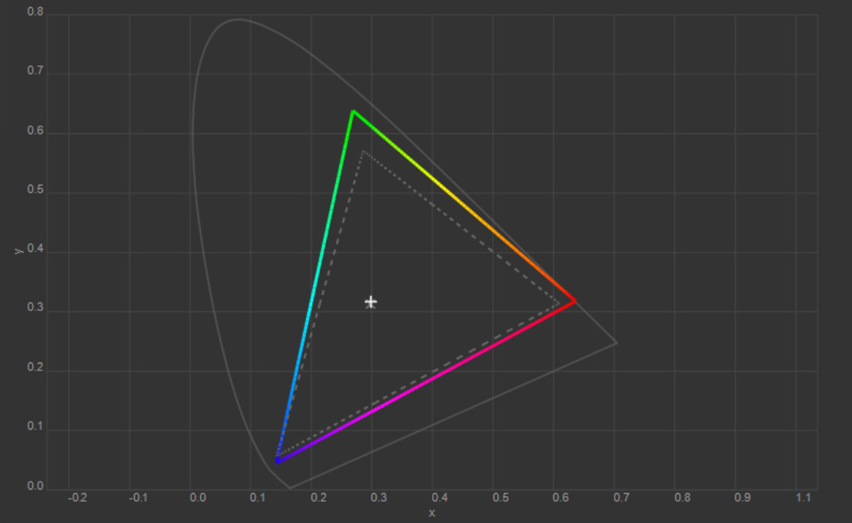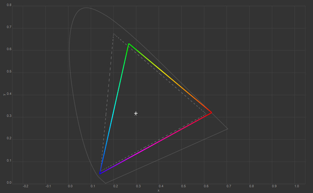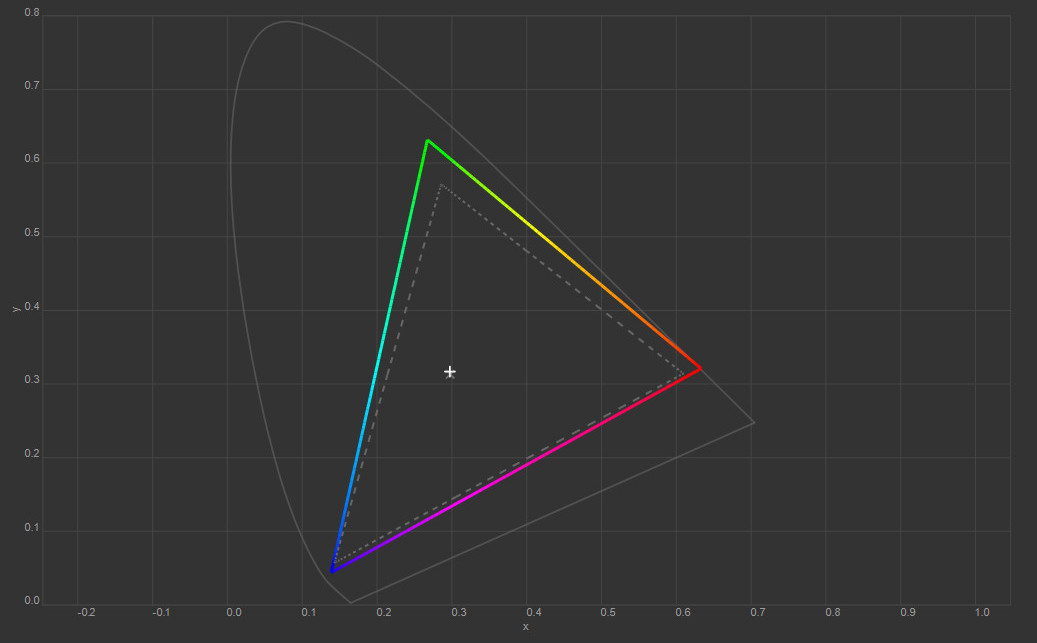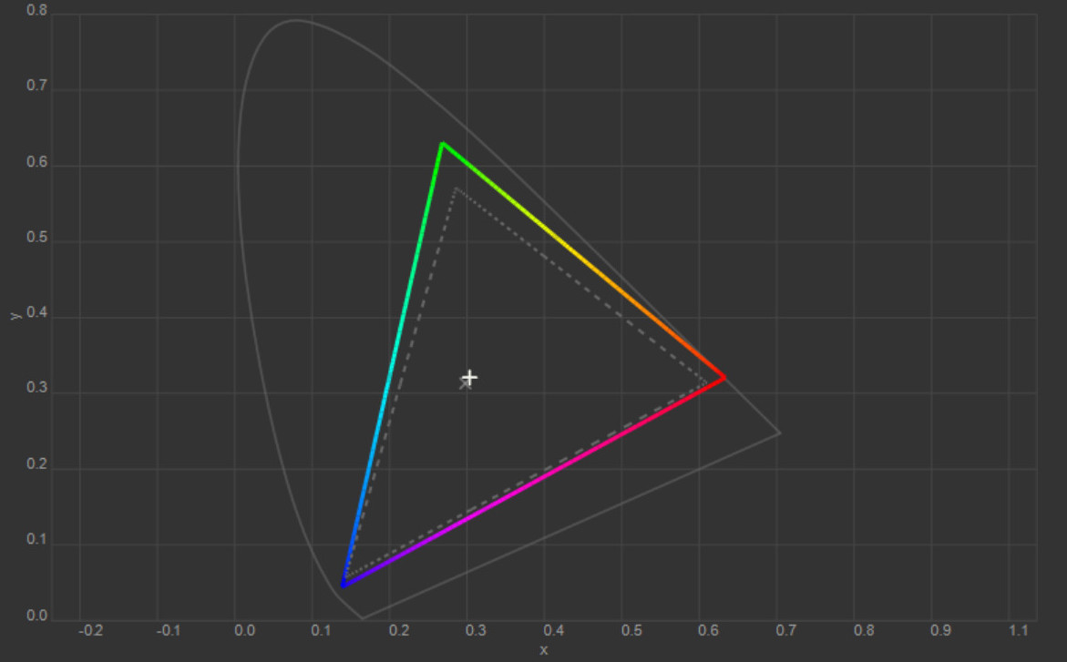 Цветовая температура точки белого сместилась до 6627 К, то есть картинка стала немного холоднее. Охват sRGB остался на уровне 100%, Adobe RGB незначительно вырос, а объем цветового диапазона увеличился на несколько десятых процентов.