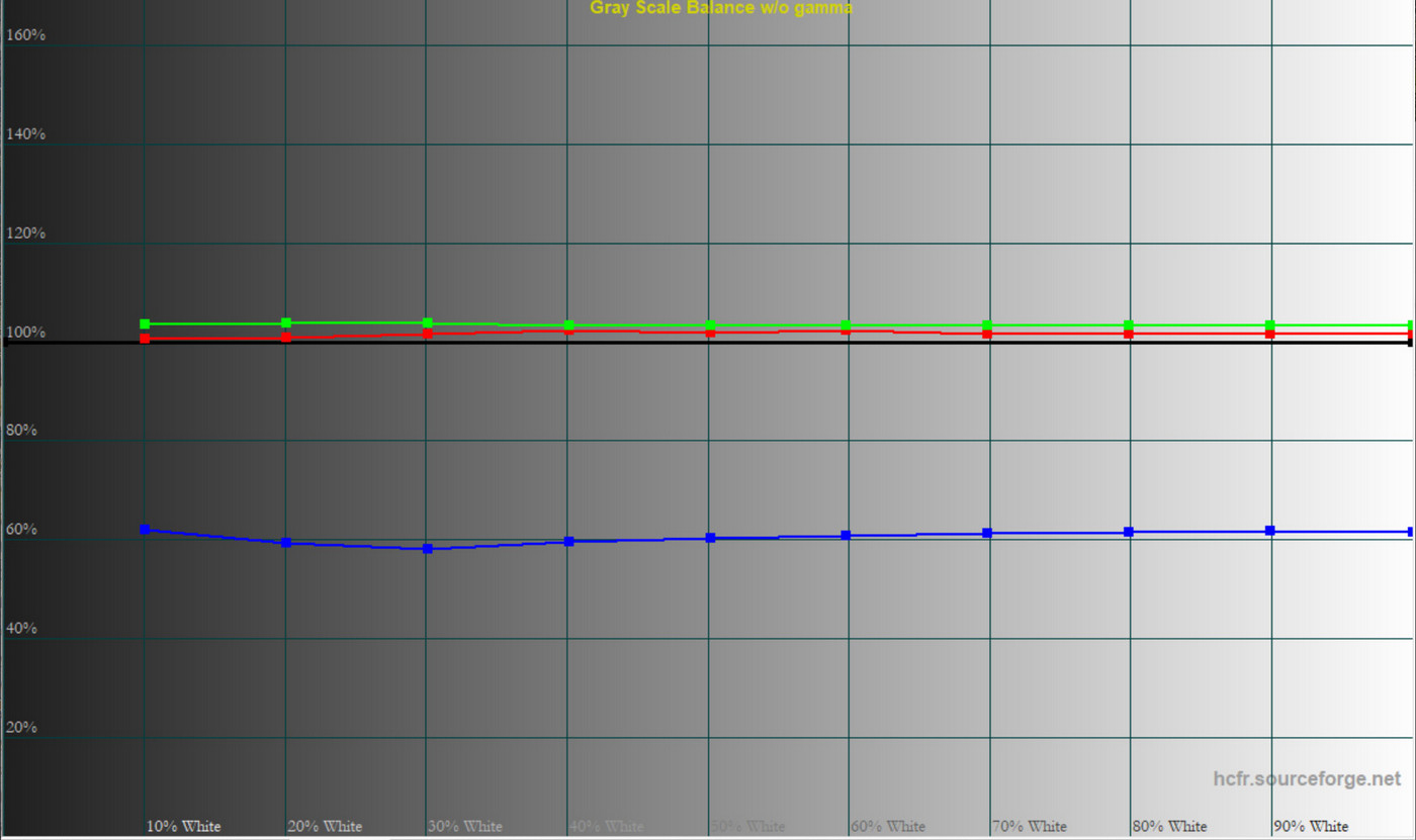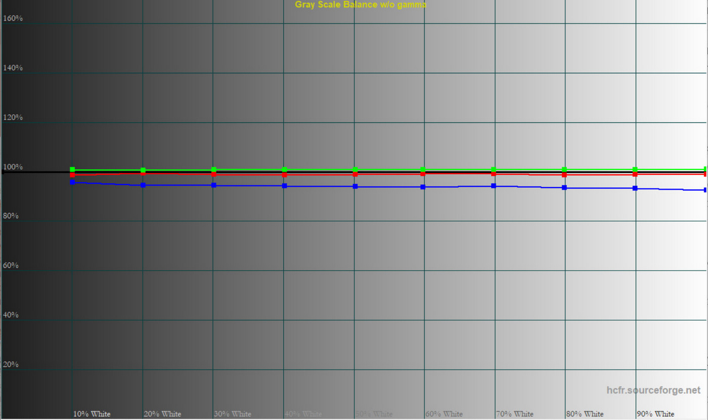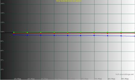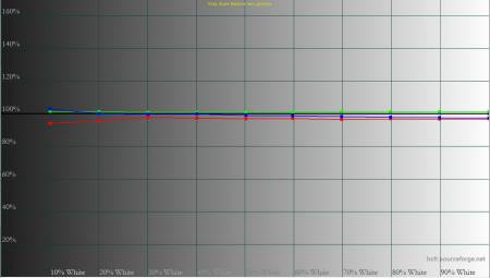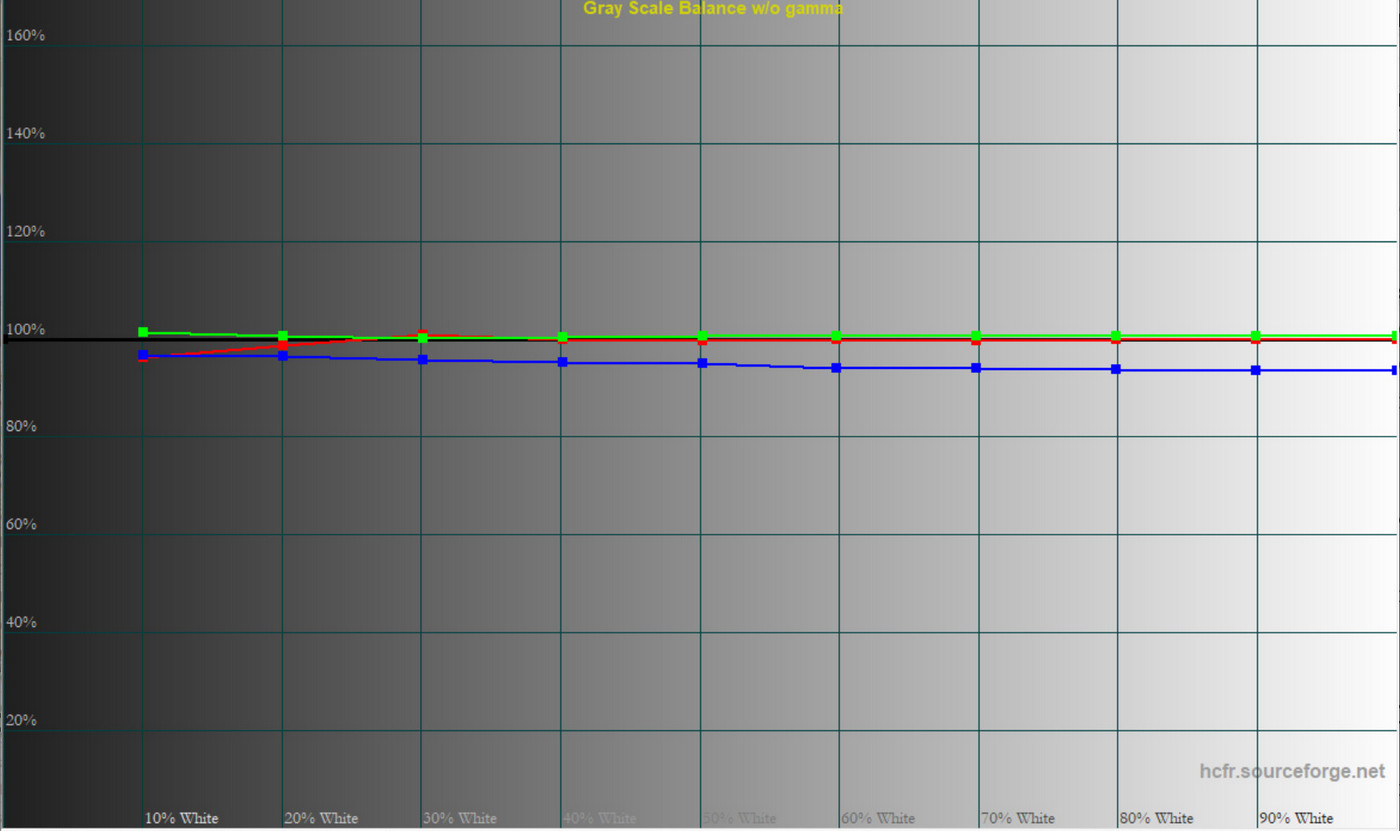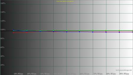 Калибровка режима Pr-User позволила существенно снизить яркость белого поля до комфортных 98,5 кд/м², сделать черный глубже и уменьшить энергопотребление с 23,5 до 19,6 Вт. Контрастность осталась практически неизменной – 1465:1 против 1578:1, что все равно является очень высоким показателем для IPS-панели.