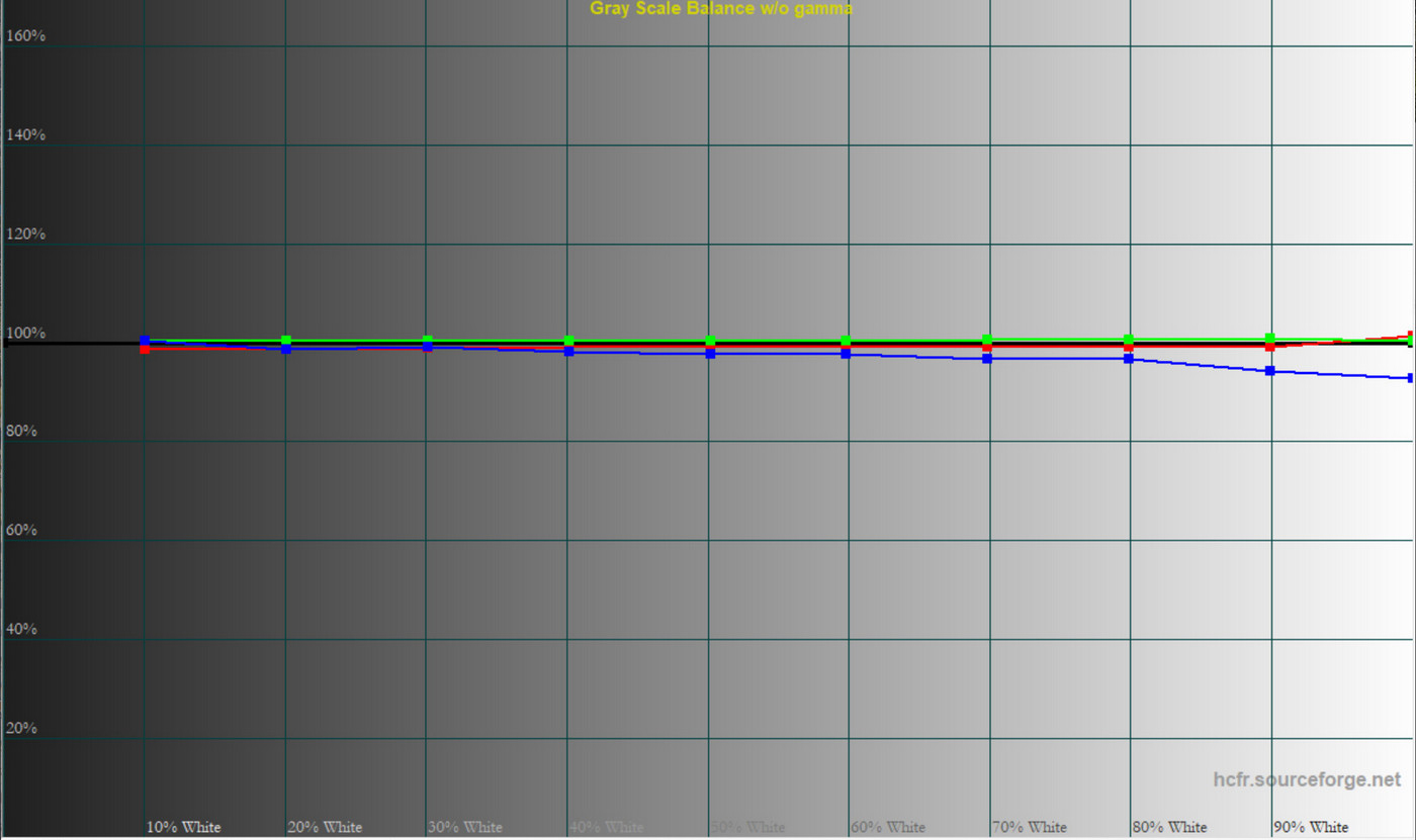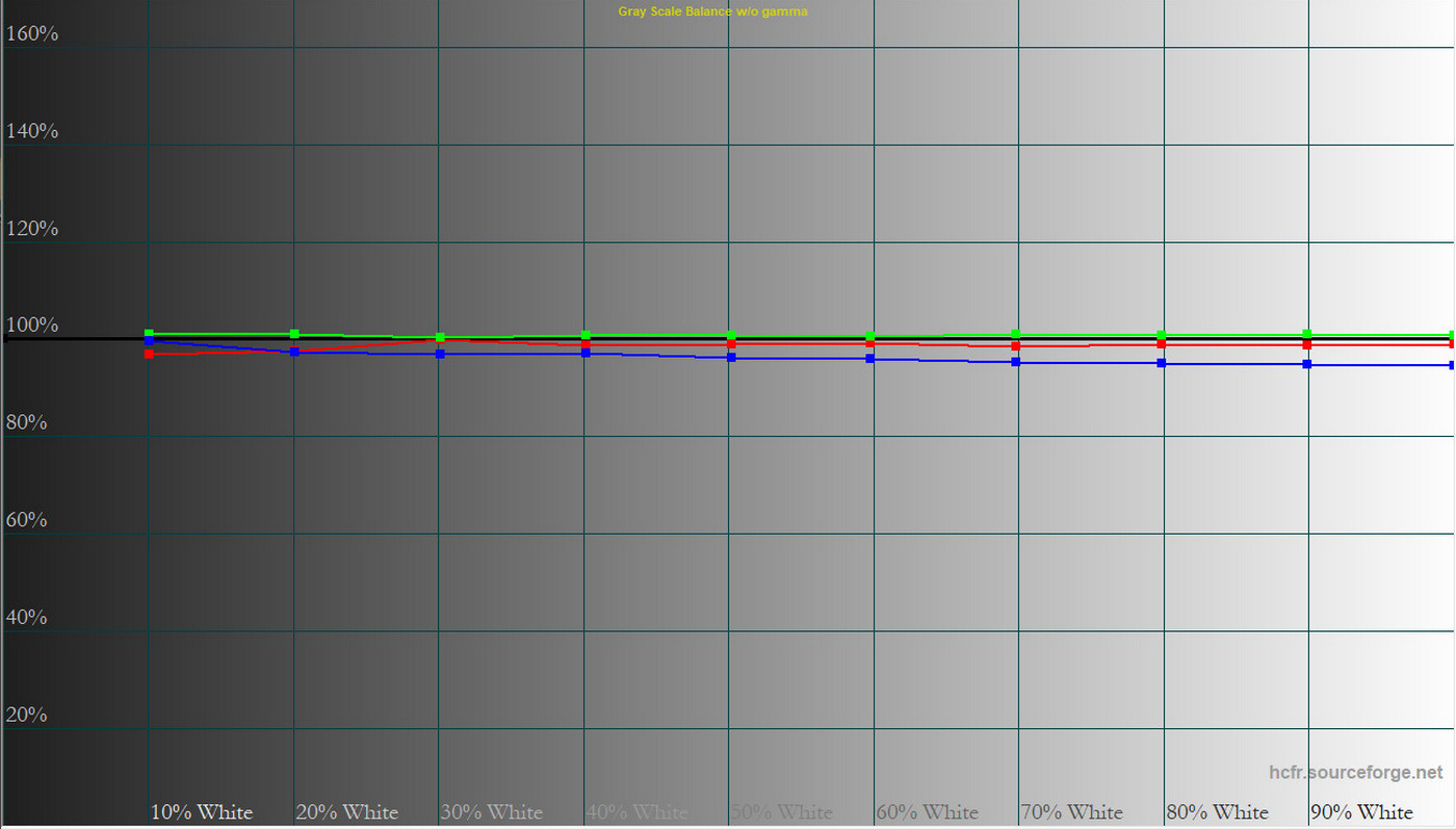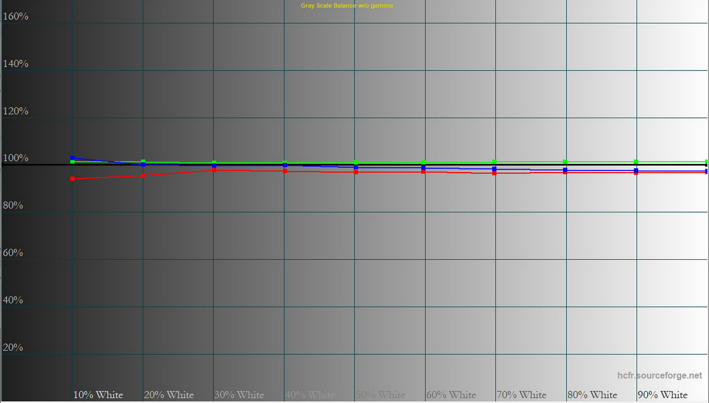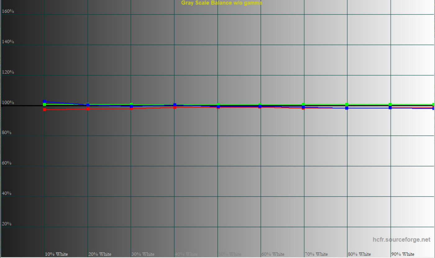 Калибровка режима Pr-User позволила существенно снизить яркость белого поля до комфортных 98,5 кд/м², сделать черный глубже и уменьшить энергопотребление с 23,5 до 19,6 Вт. Контрастность осталась практически неизменной – 1465:1 против 1578:1, что все равно является очень высоким показателем для IPS-панели.