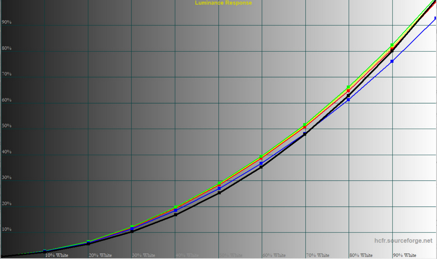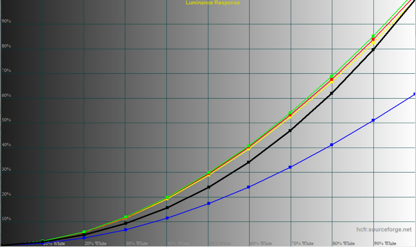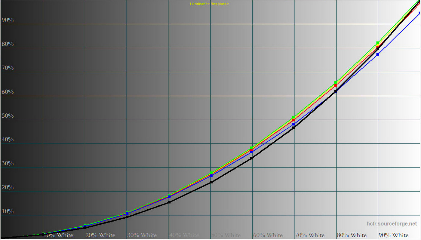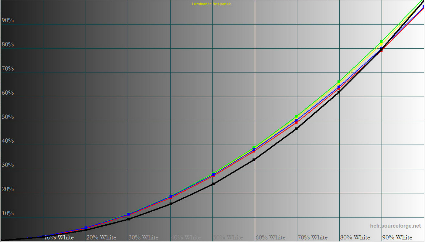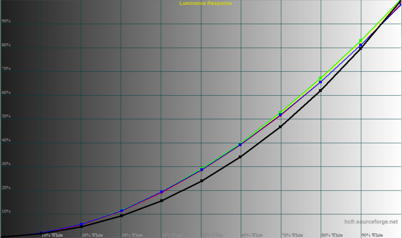 В общем, монитор демонстрирует контролируемую форму гамма-кривых, но в большинстве профилей средние значения понижены. Это обеспечивает более приятную картинку для игр, однако для работы с цветом оптимальными остаются именно «Pr‑Eco» и «Pr‑User».