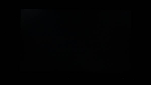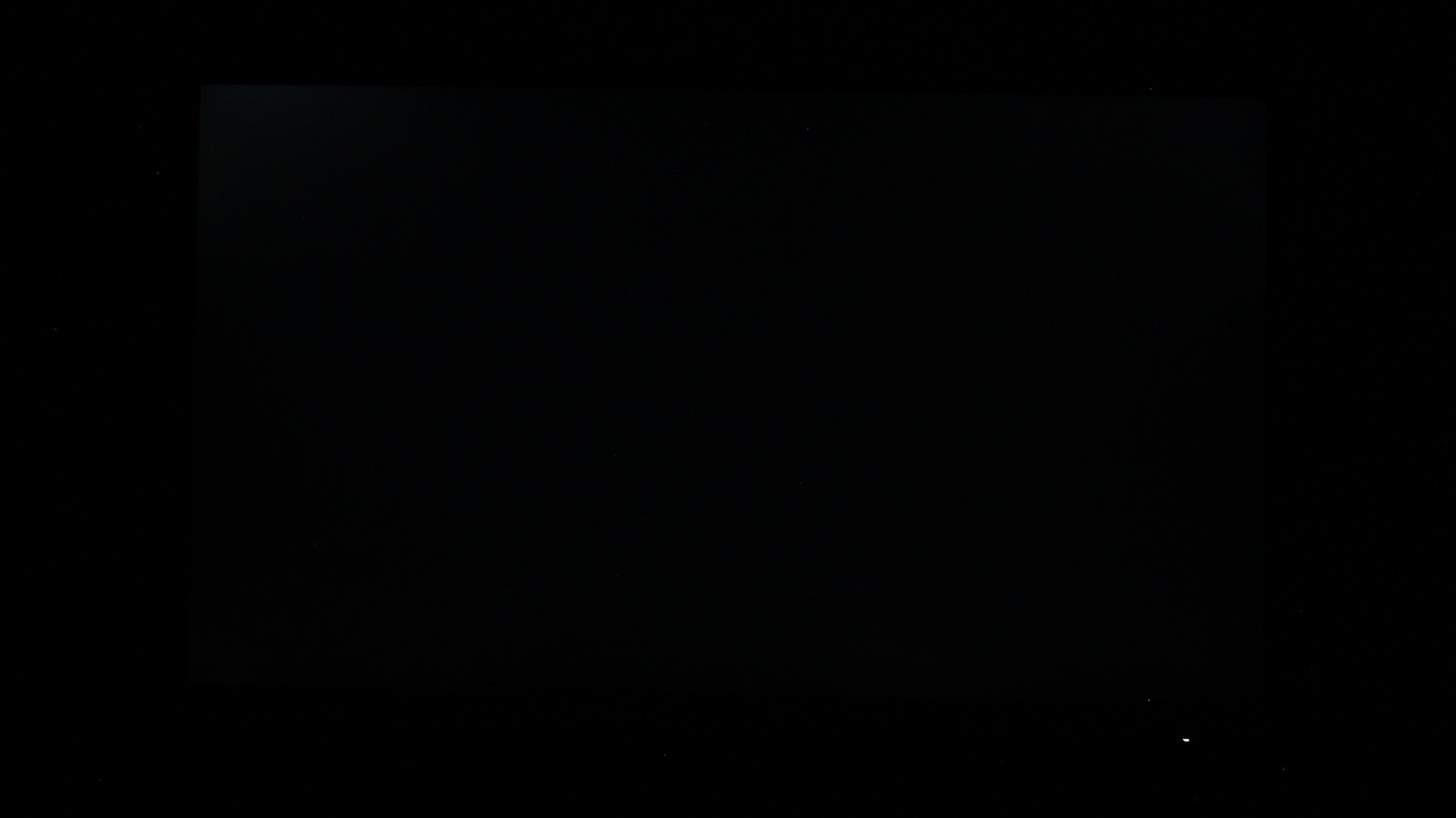 Засветы на черном экране появляются только в условиях полной темноты. На первом фото видна реальная картина: фон равномерно темный, без локальных подсветов или светлых пятен. Второе фото сделано с длинной выдержкой (1,6 с), что усиливает контраст и выводит на поверхность малейшие отклонения – в левом верхнем углу заметен локальный засвет. В реальных условиях он выглядит значительно менее выраженным, без критических утечек света и не влияет на комфорт просмотра темных сцен.