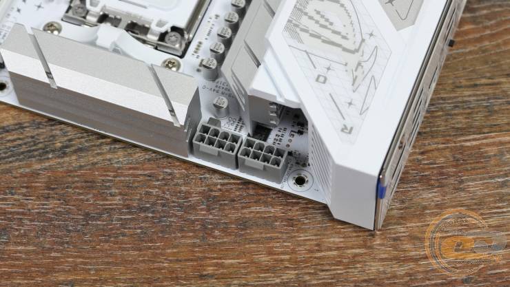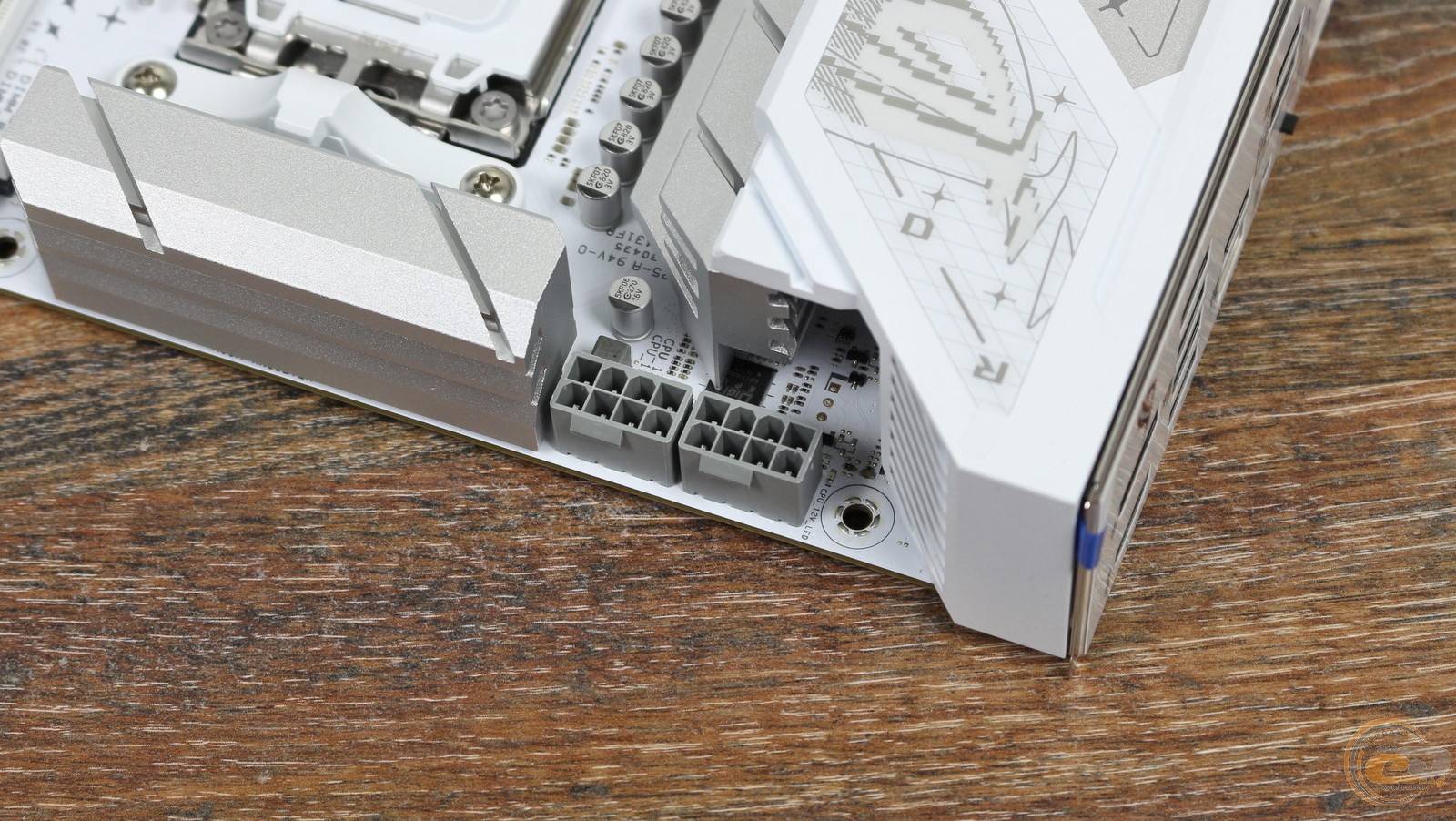 В свою очередь для подвода питания к процессору в ASUS ROG STRIX B850-G GAMING WIFI используются два 8-контактных разъема ATX12V. Рядом с ними имеется индикатор для информирования при плохом подключении коннекторов.