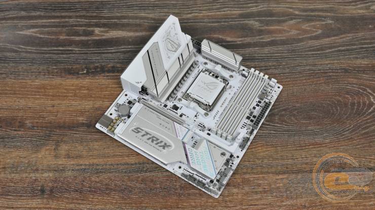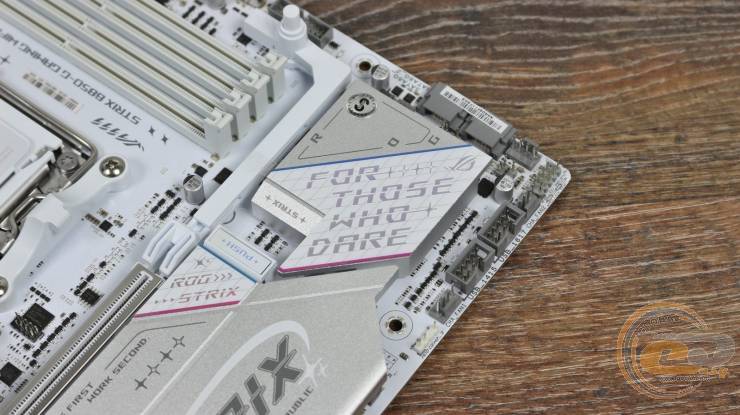 Сама плата ASUS ROG STRIX B850-G GAMING WIFI получила максимально возможные для microATX-решения размеры 244 x 244 мм. Ее светлый текстолит и серебристые радиаторы смогут украсить как белый, так и темный корпус.