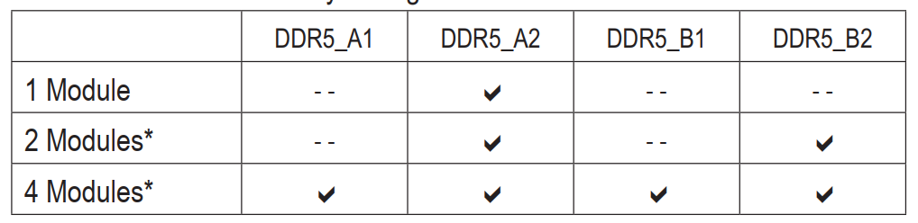 Согласно руководству пользователя, для двух планок приоритетными являются слоты A2 и B2, а для одной — A2.