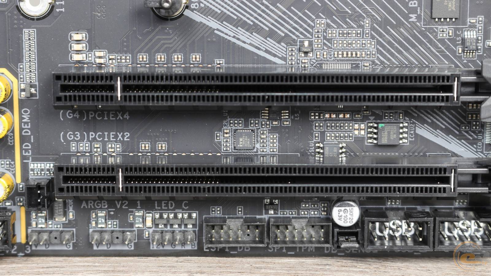 Верхний из них усилен и использует процессорные линии PCIe. Поэтому в случае процессоров AMD Ryzen 8000 он будет работать в соответствии со стандартом PCIe 4.0 в режиме x8 или x4.