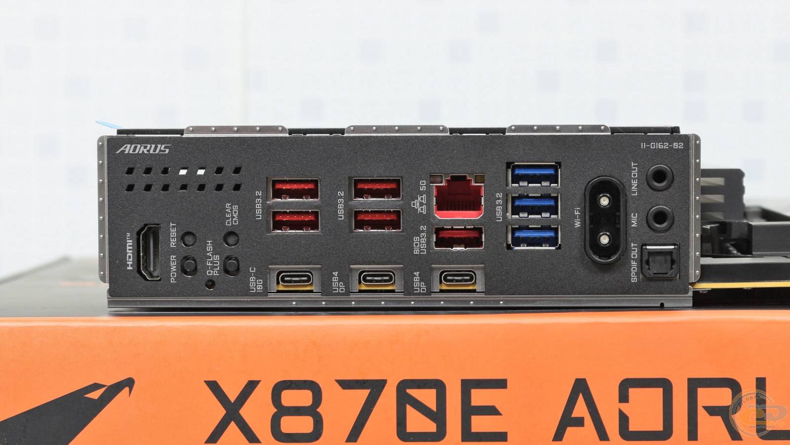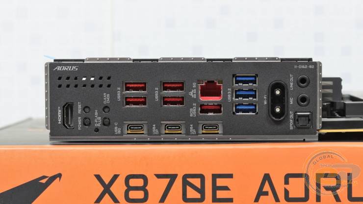 И, наконец, несколько строк об интерфейсной панели GIGABYTE X870E AORUS ELITE X3D. Сюда выведены следующие порты и элементы: