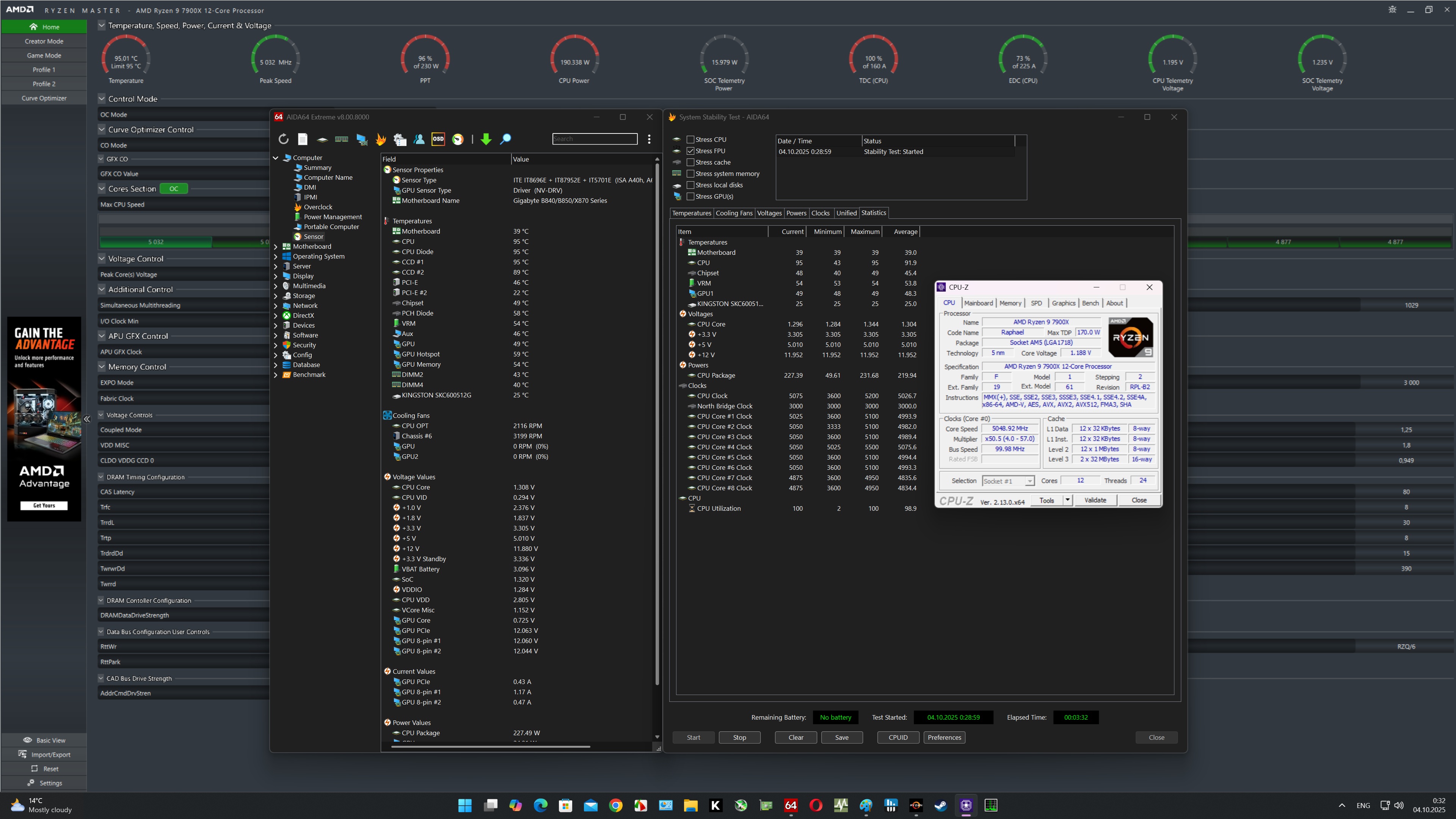 Что касается стабильности работы, то плата GIGABYTE X870E AORUS ELITE X3D без проблем прошла все наши тесты.