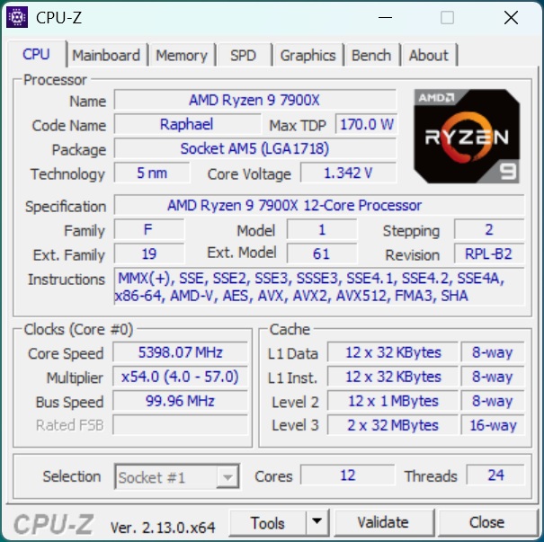 AMD Ryzen 9 7900X (Socket AM5, 4,7-5,6 ГГц, 170 Вт TDP) |