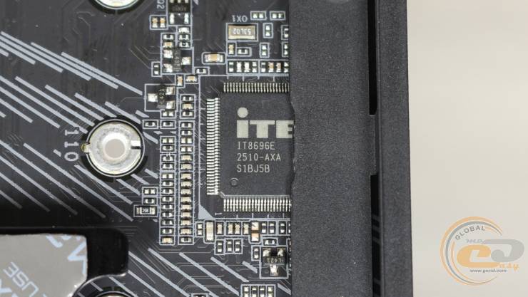 А в качестве мультиконтроллера здесь используется чип ITE IT8696E, распаянный немного левее трех слотов M.2.