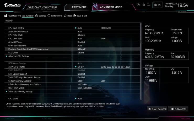 В качестве последней мы установили предел критической температуры на уровне 90°C, выбрав соответствующий пункт в BIOS: Precision Boost Overdrive (PBO) Enhancement – 90 Level 1.