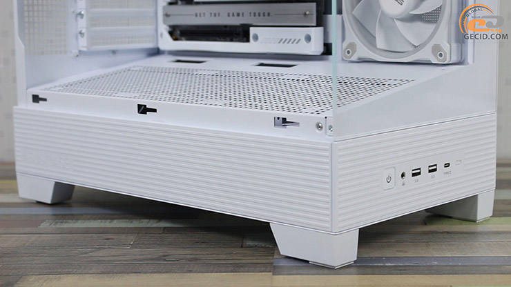 А спереди снизу вполне современный набор интерфейсов: два USB 3.0, один быстрый Type-C и комбинированный аудио. Все это делает ASUS A31 PLUS White привлекательным вариантом для создания современной эстетической и инновационной системы.