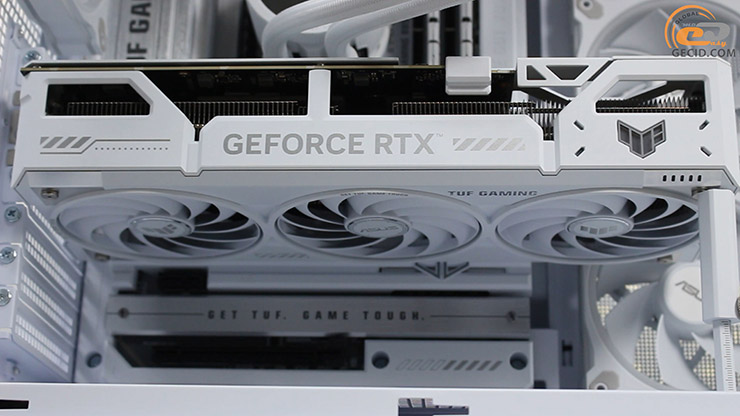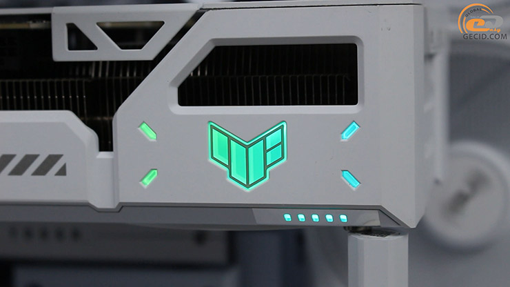 Система охлаждения здесь достойная и базируется на трех вентиляторах Axial-Tech с металлопластиковым кожухом. ARGB-подсветка выполнена в минималистичном стиле – только логотип TUF на торце.