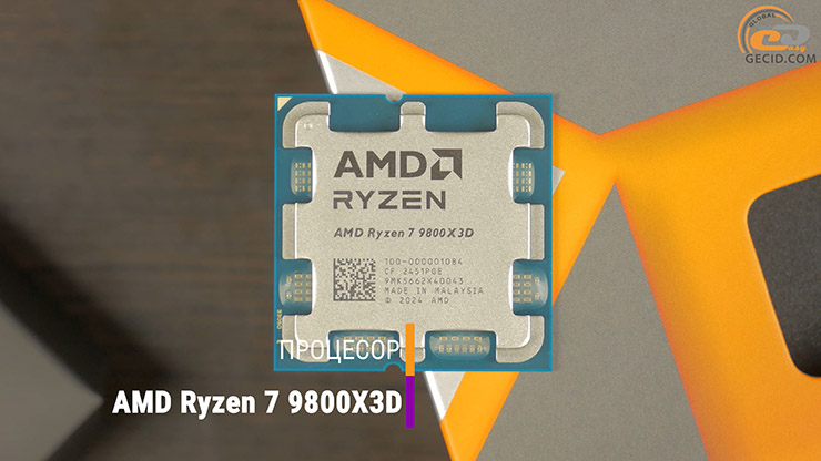 В качестве процессора в данном ПК используется один из самых желанных геймерских представителей линейки Ryzen 9000 — AMD Ryzen 7 9800X3D. Он построен на архитектуре Zen 5 и имеет 8 ядер в 16 потоков, а главной "фишкой" является технология 3D V-Cache с дополнительными 64 МБ кэш-памяти третьего уровня. Благодаря этому чип обеспечивает отличную производительность в современных играх и некоторых ресурсоемких задачах.