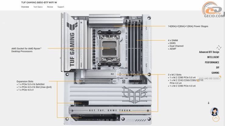 Аппаратная часть тоже не подкачала: актуальный чипсет AMD B850, надежная 14+2+1-фазная подсистема питания, долговечная элементная база, солидные радиаторы охлаждения и полноценный набор современных интерфейсов, включая 20-гигабитный Type-C и WiFi7, делают эту модель не только красивой, но и функциональной основой мощной геймерской сборки.