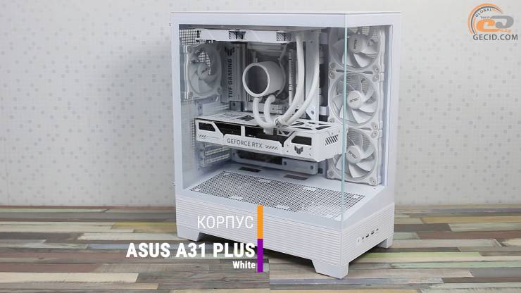 Удерживает всю систему внутри панорамный корпус ASUS A31 PLUS White, отличающийся среди аналогов тем, что сохранил классическую однокамерную конструкцию, но при этом полностью поддерживает концепцию BTF всех версий. Такой подход позволяет объединить современный тренд на скрытое подключение с проверенной эргономикой обычного шасси.
