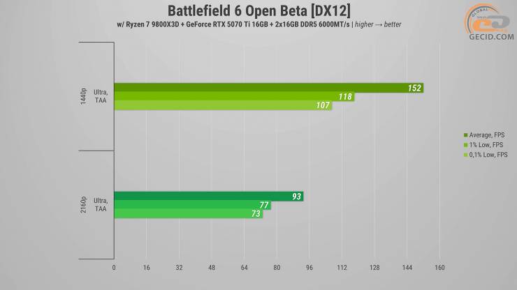 Начинаем с анализа производительности системы в недавнем бета-тестировании шестой части Battlefield. Бороться за контрольные точки и территории на ультранастройках графики выходит без каких-либо проблем или неприятностей во всех случаях – картинка стабильно обновляется с частотой в 150 кадров в секунду даже без какого-либо буста FPS.