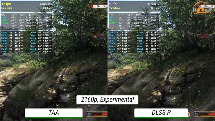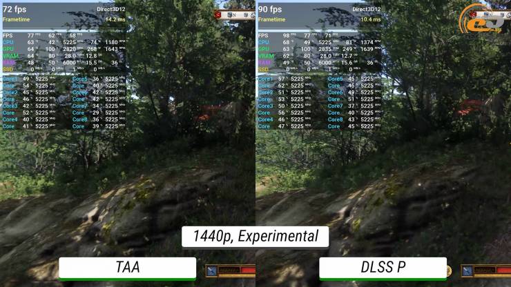С DLSS местами частота кадров также находится на грани, но общий результат все равно комфортный и позволяет исследовать старинные территории с максимальным погружением.