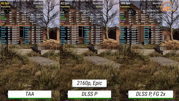 После вмешательства производительного DLSS или генератора кадров ситуация возвращается на превосходный уровень. Однако благодаря новому поколению технологий четкость изображения не так ухудшается и это действительно радует.