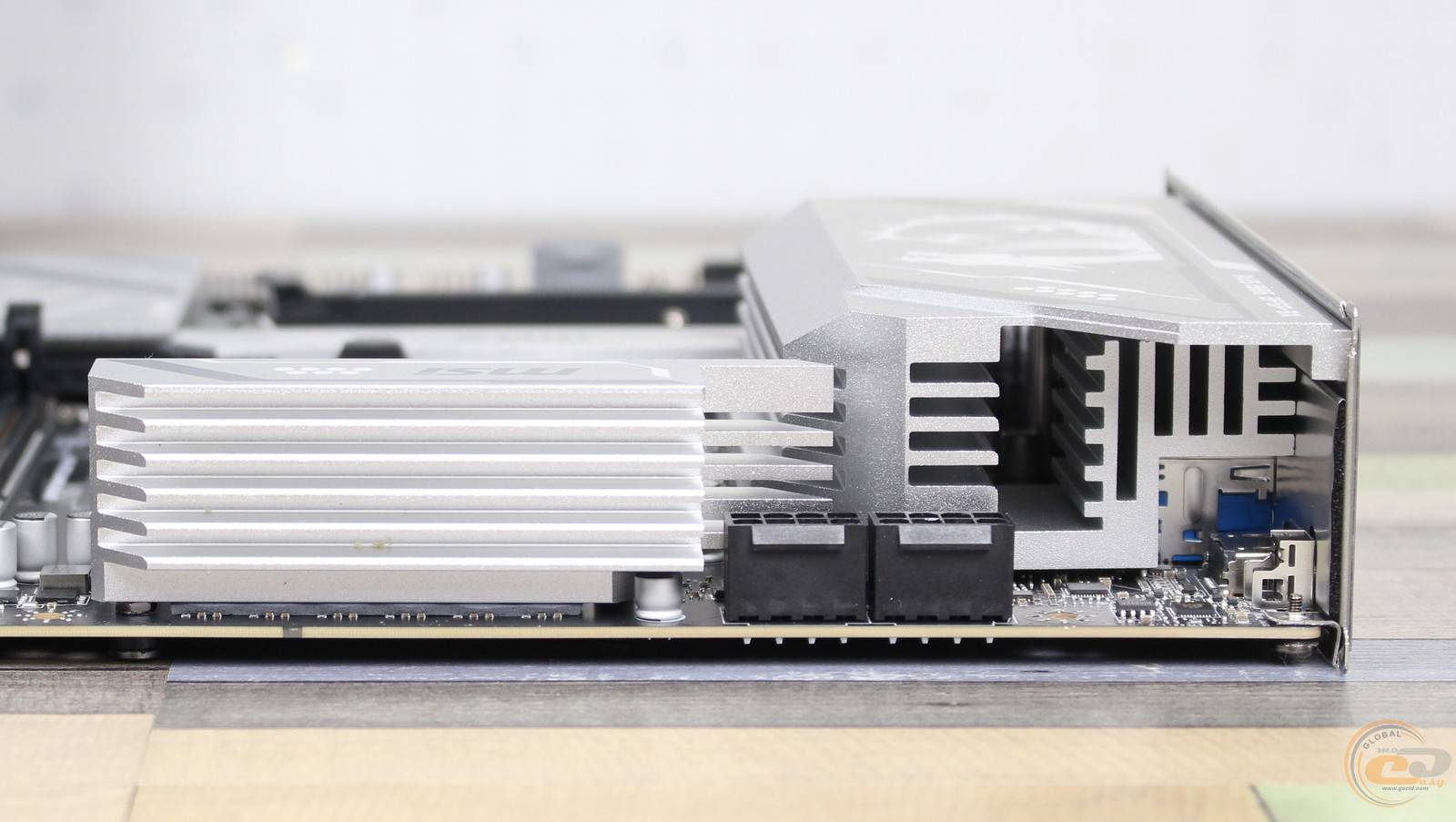 Алюминиевые радиаторы на элементах подсистемы питания Алюминиевый радиатор на контроллере портов USB4 Алюминиевый радиатор для верхнего M.2-накопителя Алюминиевый радиатор на чипсете |