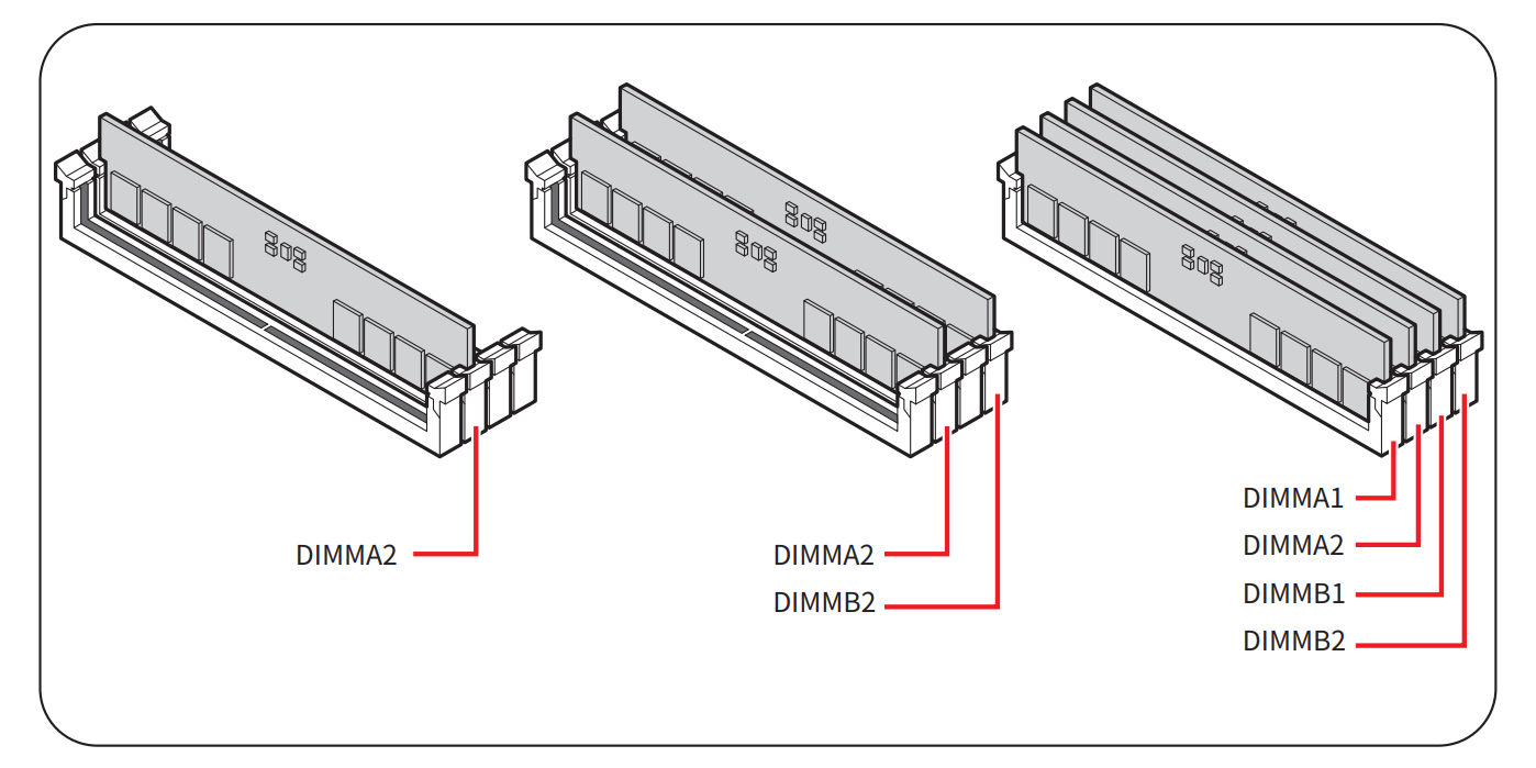 По традиции, для двух планок памяти приоритетными традиционно являются слоты A2 и B2, а для одной — A2.