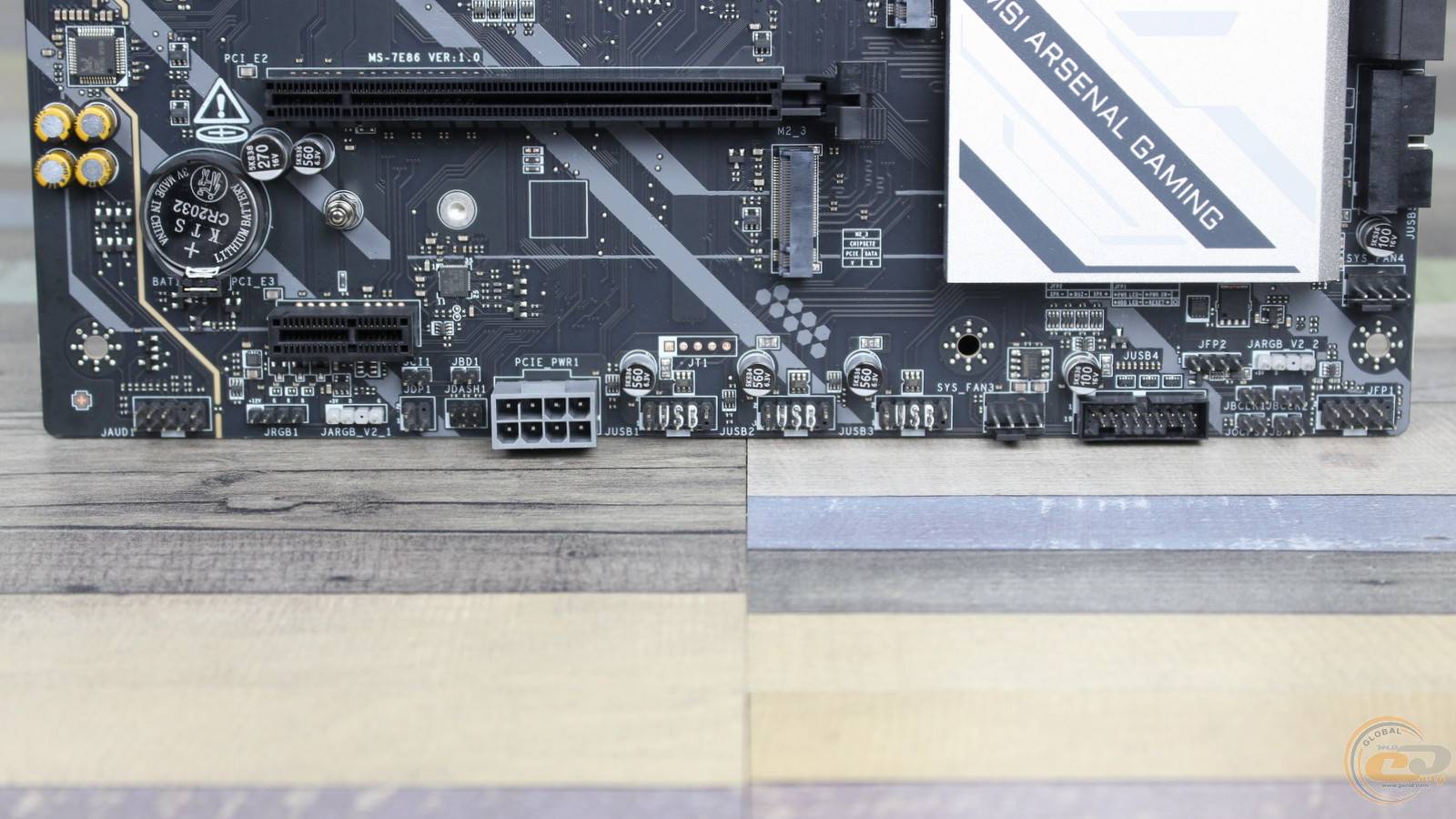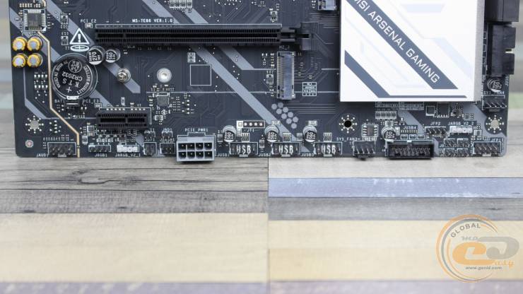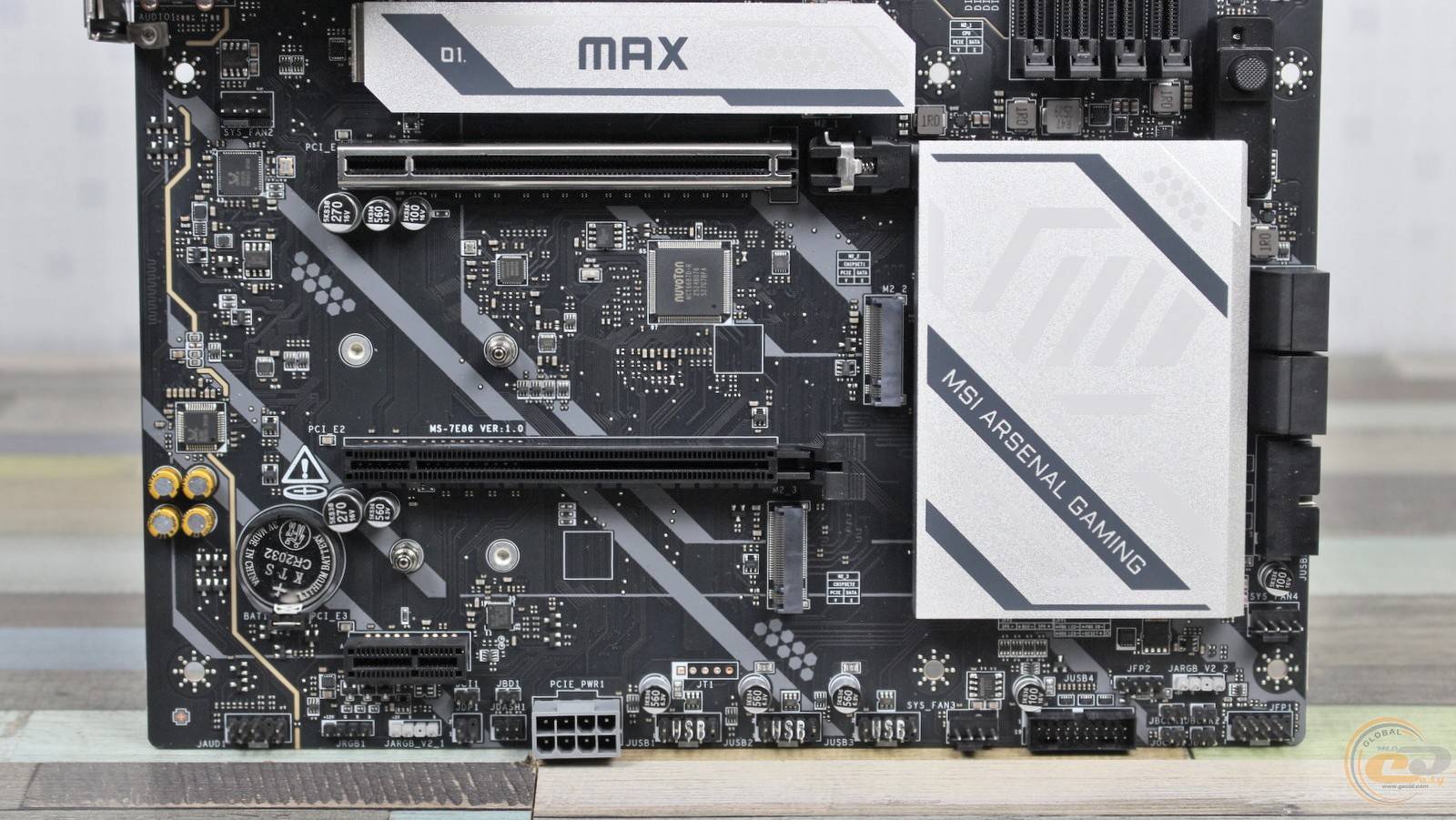 Вдоль правого края виден 24-контактный разъем питания ATX и колодка USB 3.2 Gen 2, обладающая пропускной способностью до 10 Гбит/с. Напомним, в обоих "Томагавках" используется уже 20-гигабитная колодка USB 3.2 Gen 2x2.