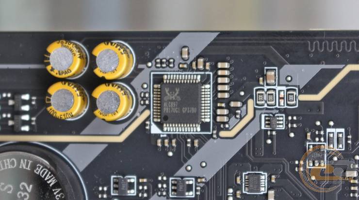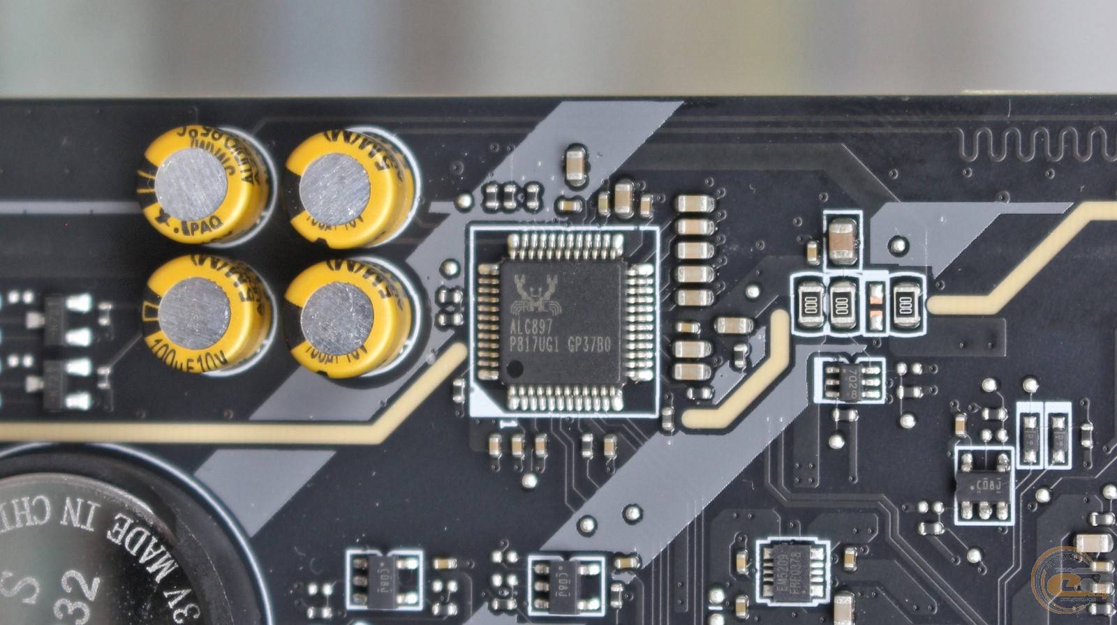 Вдоль левого борта MSI MAG X870E GAMING MAX WIFI расположились составляющие аудио-подсистемы: недорогой 7.1-канальный кодек Realtek ALC897 и квартет аудио конденсаторов, отделенные экранированием.