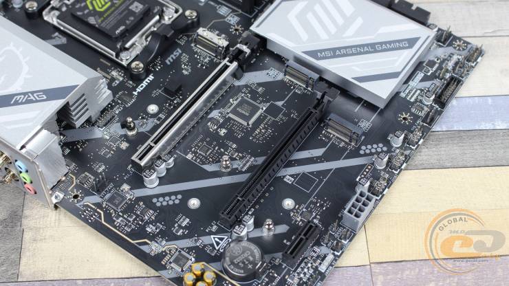 Верхний рассчитан на установку видеокарт, поэтому получил металлическое обрамление. Впрочем, из-за использования процессорных линий в паре с AMD Ryzen 8000 он будет работать в соответствии со стандартом PCIe 4.0 и максимум в режиме x8 или x4.