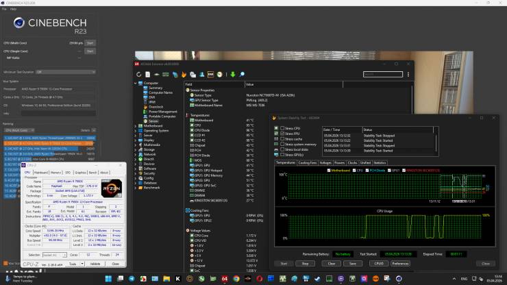 Что касается температур, то после 15 минутного стресс-теста 12-ядерного AMD Ryzen 9 7900X в AIDA FPU, радиаторы на VRM прогрелись только до 48-52°С, а расположенные под ними дроссели – до 58-62°С. Учитывая такие низкие значения, тестируемая плата отлично подойдет и для установки топовых 16-ядерных 170-ваттных «камней» – Ryzen 9 9950X и 9950X3D.