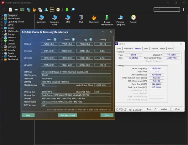 Без изменения таймингов, но уже при напряжении 1,4 В модули заработали при DDR5-6600, при этом AIDA64 оценила прирост быстродействия в 3-9% при аналогичных задержках. И, что немаловажно, частота Uncore Frequency осталась без изменений.