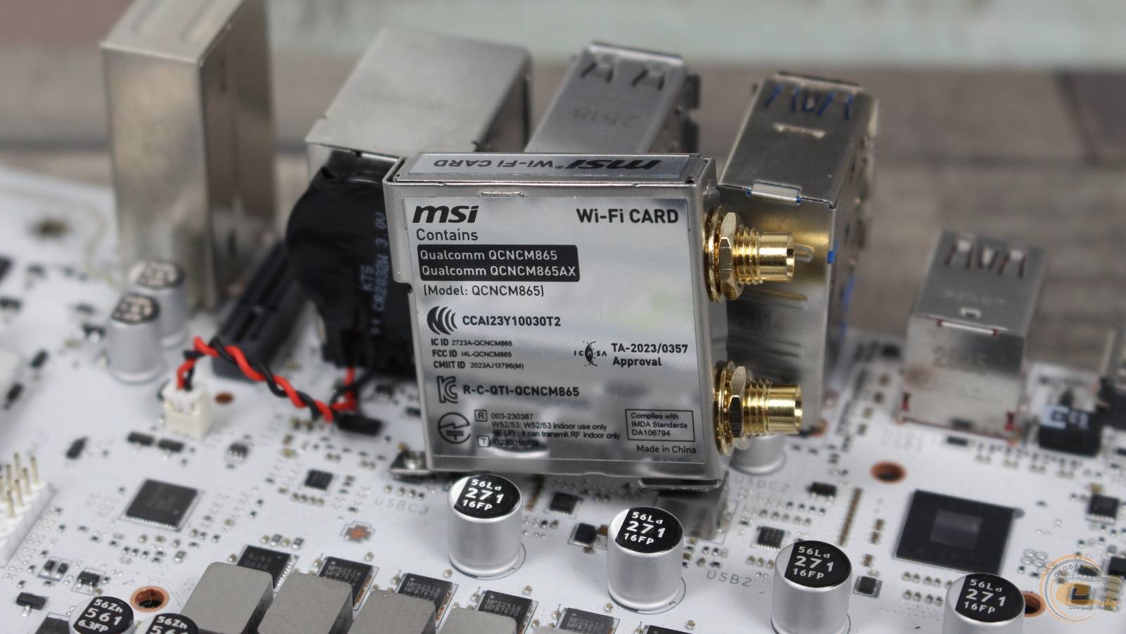 В свою очередь, модуль Qualcomm QCNCM865 вместе с комплектной антенной EZ Antenna с магнитным креплением обеспечивает поддержку Wi-Fi 7 и Bluetooth 5.4. А рядом расположена батарейка CMOS формата CR2032 с 2-контактным коннектором – такая же, как используется в ноутбуках.