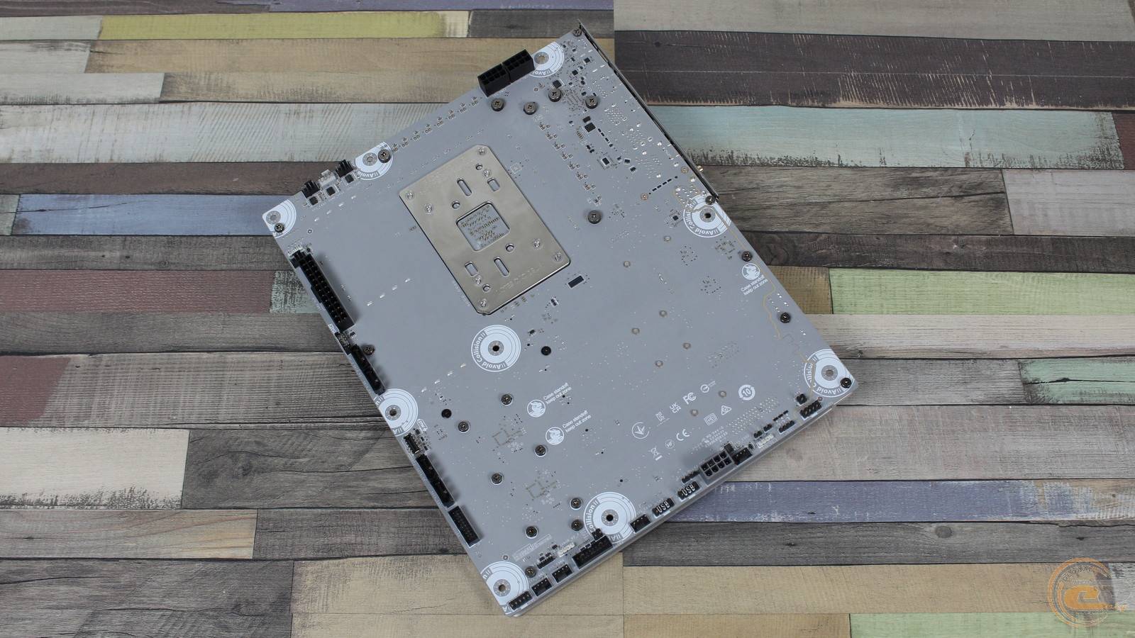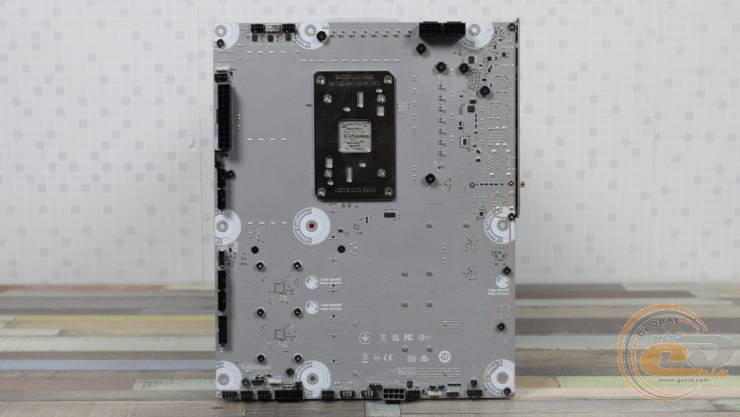 На обороте MSI MAG X870E TOMAHAWK MAX WIFI PZ имеется привычный набор из усилительной пластины процессорного разъема и крепежных винтов радиаторов. А поскольку перед нами решение с приставкой «PZ» (Project Zero), сюда также вынесли все порты и разъемы. С одной стороны, это позволяет сделать систему максимально привлекательной, с другой – требует соответствующего корпуса.