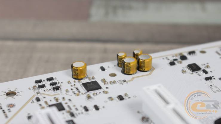 Тепло от транзисторов и дросселей передается через термопрокладки с высокой теплопроводностью 7 Вт/(м·К).