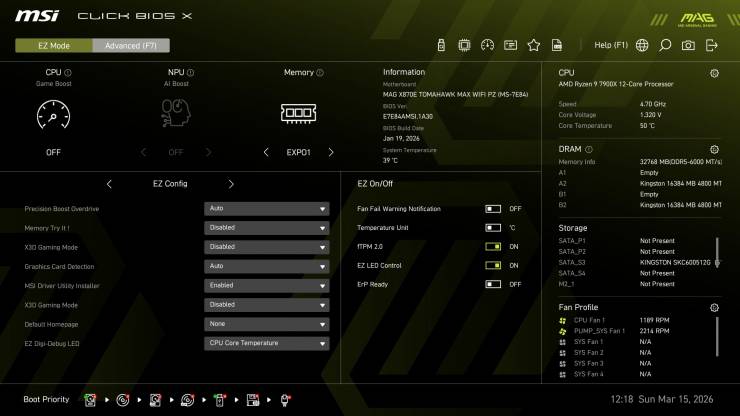 Плата MSI MAG X870 TOMAHAWK MAX WIFI PZ получила загрузчик MSI Click BIOS X на основе графического интерфейса UEFI.