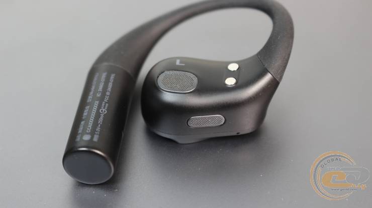 В нижней цилиндрической части каждого наушника расположен аккумулятор, который способствует лучшему балансу конструкции и обеспечивает стабильную посадку за ухом.