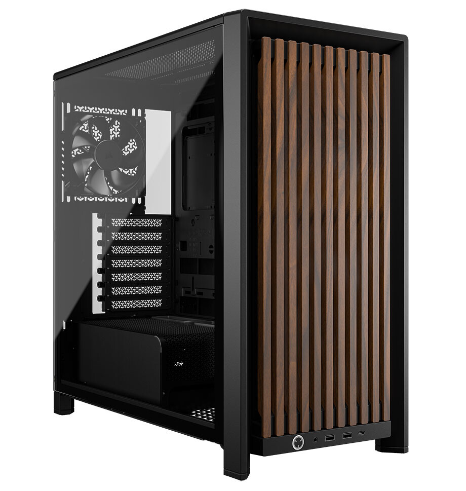 FRAME 4000D WOOD RS имеет более сдержанный вид с деревянными декоративными элементами, придающими корпусу премиальный характер. Он также поддерживает современные стандарты охлаждения и совместим с широким спектром компонентов, включая крупные видеокарты и системы жидкостного охлаждения.