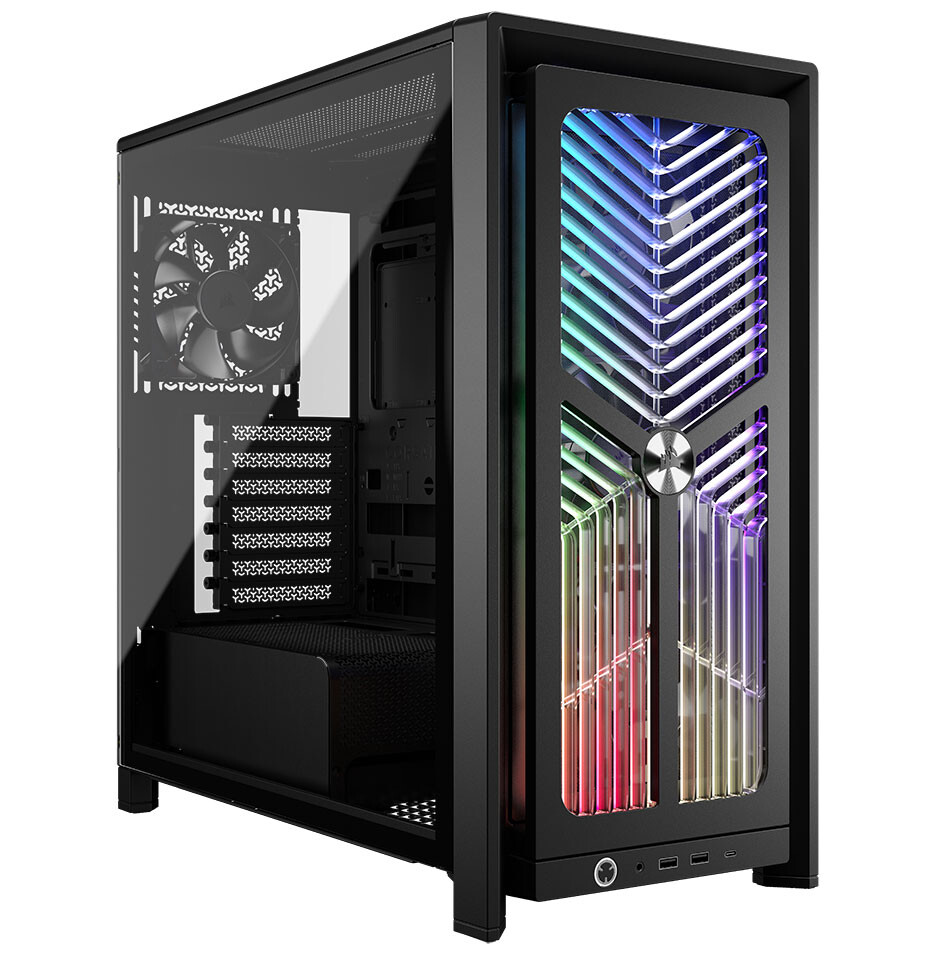 FRAME 4000X RS отличается акцентом на эстетике и охлаждении. Он оснащён стеклянной боковой панелью, демонстрирующей внутренние компоненты, и поддерживает эффективную вентиляцию благодаря оптимизированной конструкции. В комплект входят вентиляторы Corsair RS, обеспечивающие баланс между производительностью и низким уровнем шума.