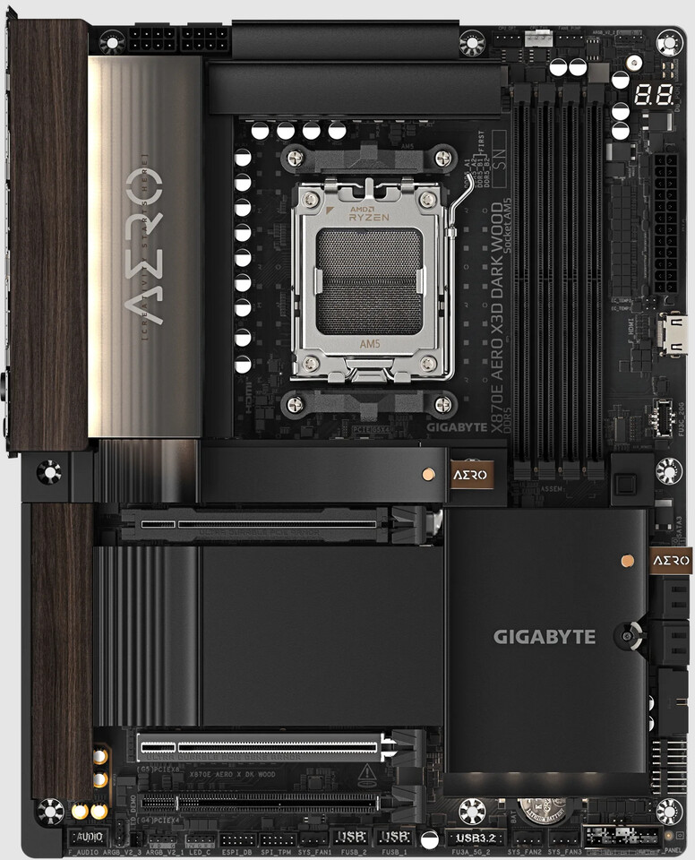 Gigabyte представила материнскую плату X870E AERO X3D Dark Wood — новую модель для процессоров AMD Ryzen 7000, 8000 и 9000 с уникальным деревянным дизайном и поддержкой PCIe 5.0.
