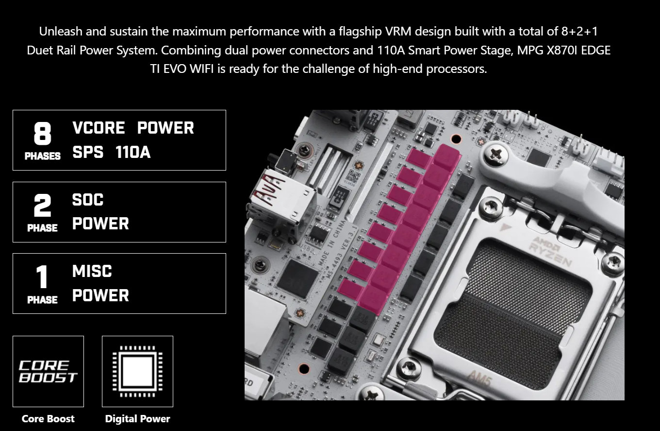 MSI представила материнскую плату Mini-ITX MPG X870I EDGE TI EVO WIFI с поддержкой памяти DDR5-10000 OC