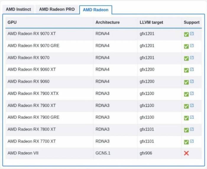 С выходом ROCm 7.0.2 официально поддерживаются модели Radeon RX 9060 и RX 9060 XT, которые присоединяются к ранее поддерживаемой серии RX 9070. Это первый случай, когда все текущие карты серии Radeon RX 9000 совместимы с вычислительным стеком ROCm, что критически важно для разработчиков, использующих эти GPU для задач искусственного интеллекта и машинного обучения.