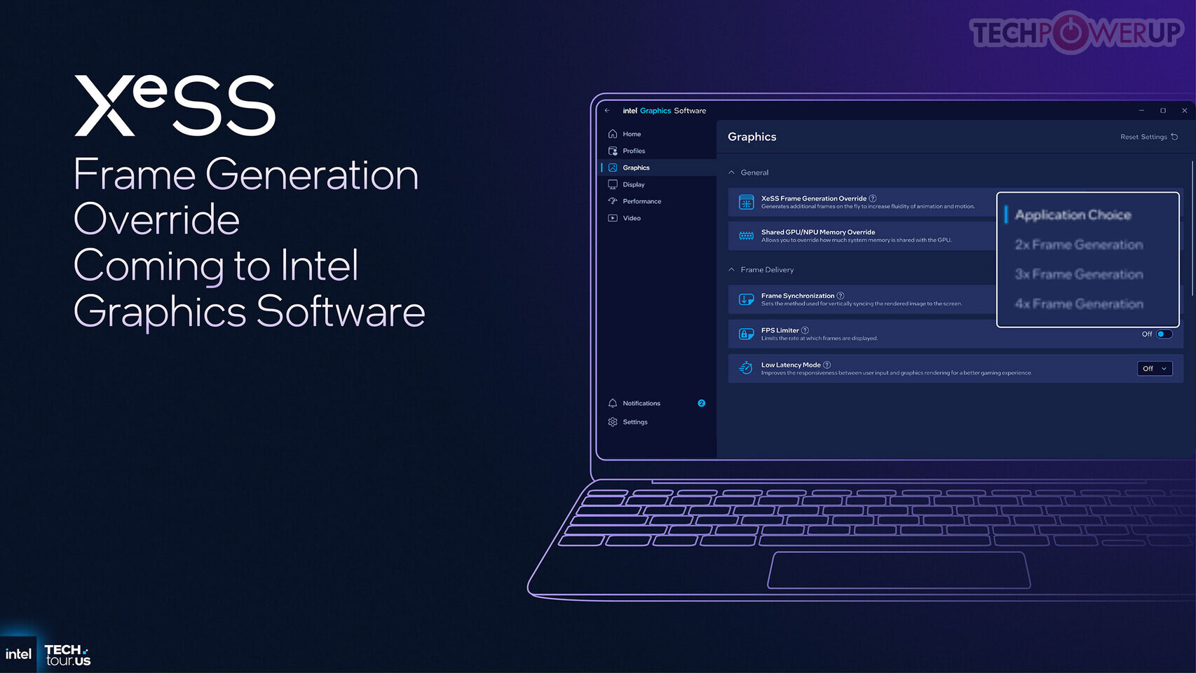 Новая функция генерации кадров XeSS 3 появится в качестве опции в приложении Intel Graphics Software. Пользователи смогут выбирать между режимами генерации кадров: 2×, 3× и 4×.