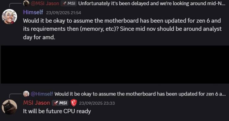 Представитель компании в Reddit подтвердил, что новые материнские платы 800-й серии будут «Future CPU Ready», что является первым публичным намеком на поддержку архитектуры Zen 6.
