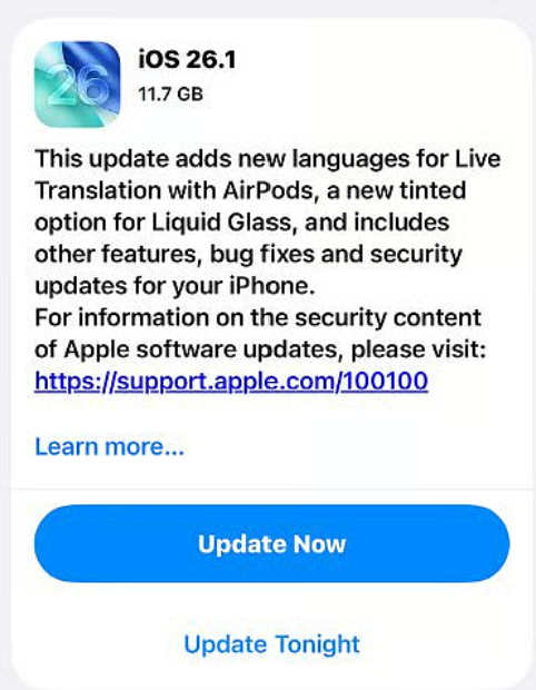 Apple выпустила первое крупное обновление для своих операционных систем: iOS 26.1, iPadOS 26.1 и macOS 26.1.