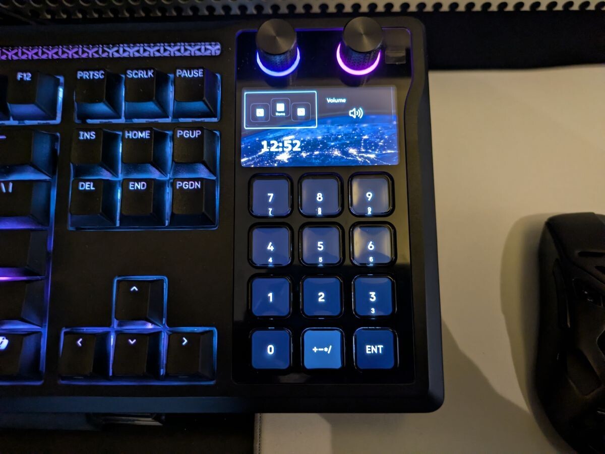 Главной особенностью модели стала интеграция полноценного контроллера Elgato Stream Deck непосредственно в корпус. Вместо стандартного цифрового блока справа размещена панель с 12 программируемыми ЖК-клавишами, двумя прецизионными органами управления и полноцветным экраном для мониторинга статистики. Такая конструкция позволяет стримерам и создателям контента управлять эфиром, переключать сцены в OBS или редактировать видео в Premiere Pro, не отрывая руки от клавиатуры и не используя Alt+Tab.