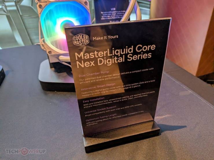 Особое внимание привлекла модель MasterLiquid Core Nex Digital. Она разработана специально для систем под высокой нагрузкой или с разогнанными процессорами. Кулер оснащен встроенным скрытым вентилятором VRM, который, по данным производителя, способен снизить температуру силовых элементов материнской платы на 10,2°C. Помимо активного охлаждения зоны питания, помпа имеет интегрированную ЖК-панель и RGB-подсветку, которые полностью настраиваются через фирменное ПО MasterCTRL.